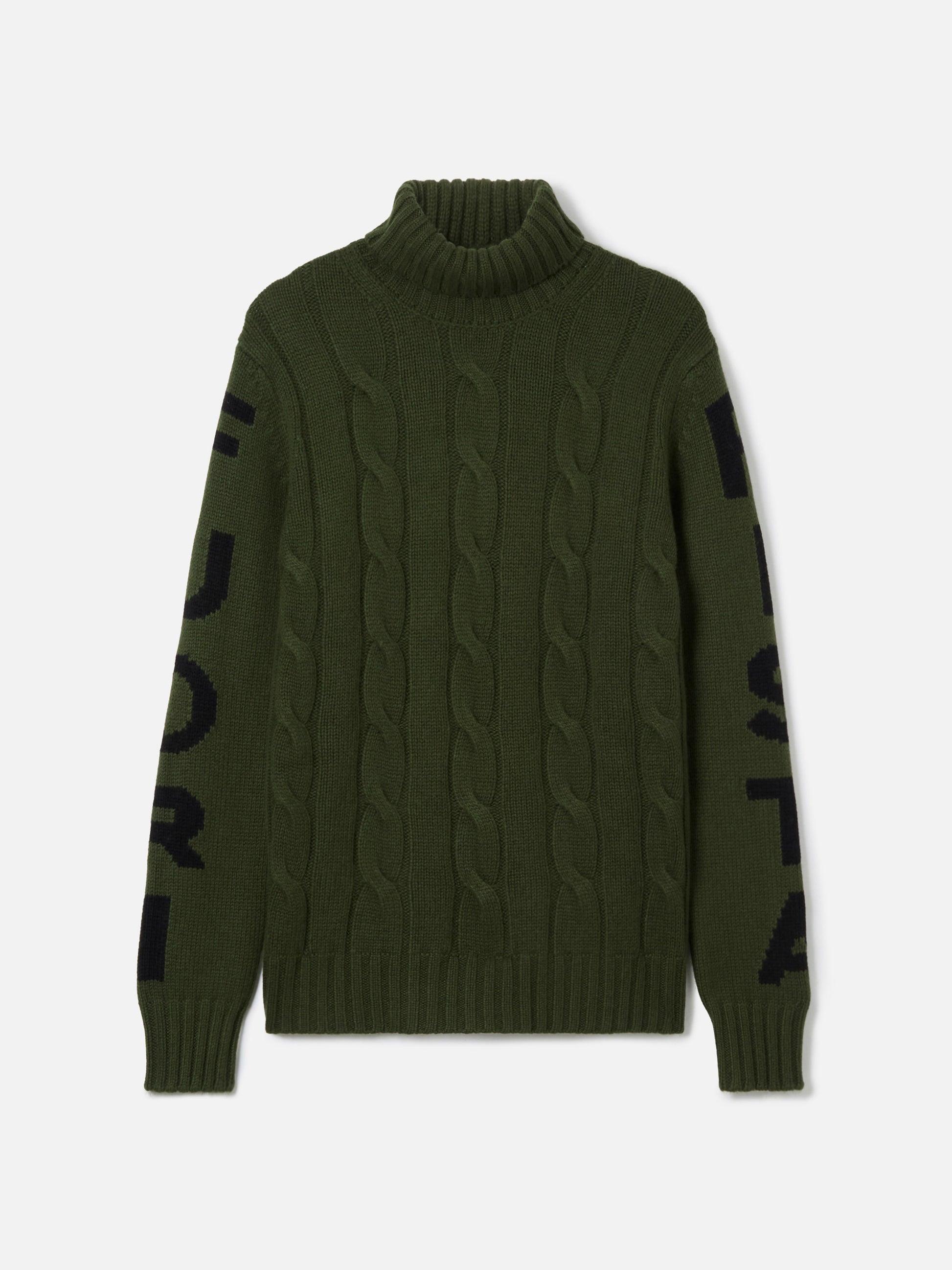 Maglione da uomo a collo alto intrecciato con stampa Fuori pista