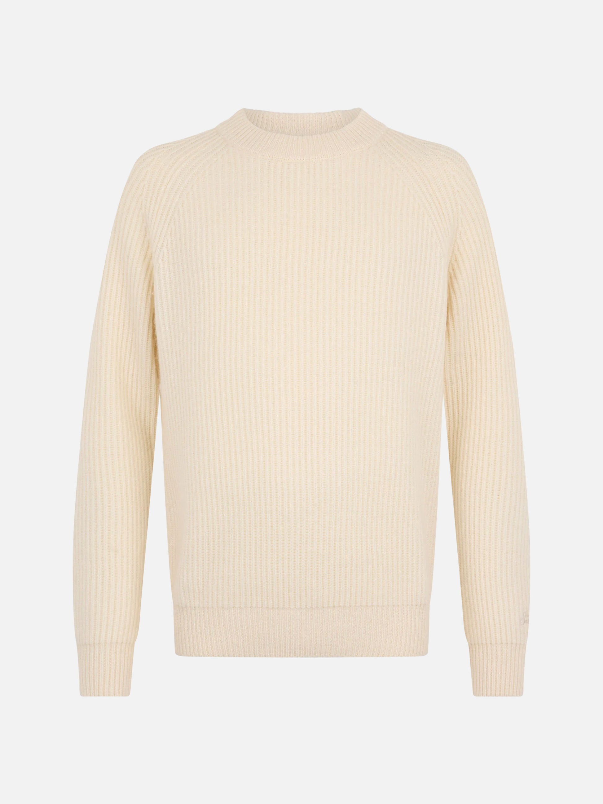 Maglione bianco a coste Marine in MISTO CASHMERE