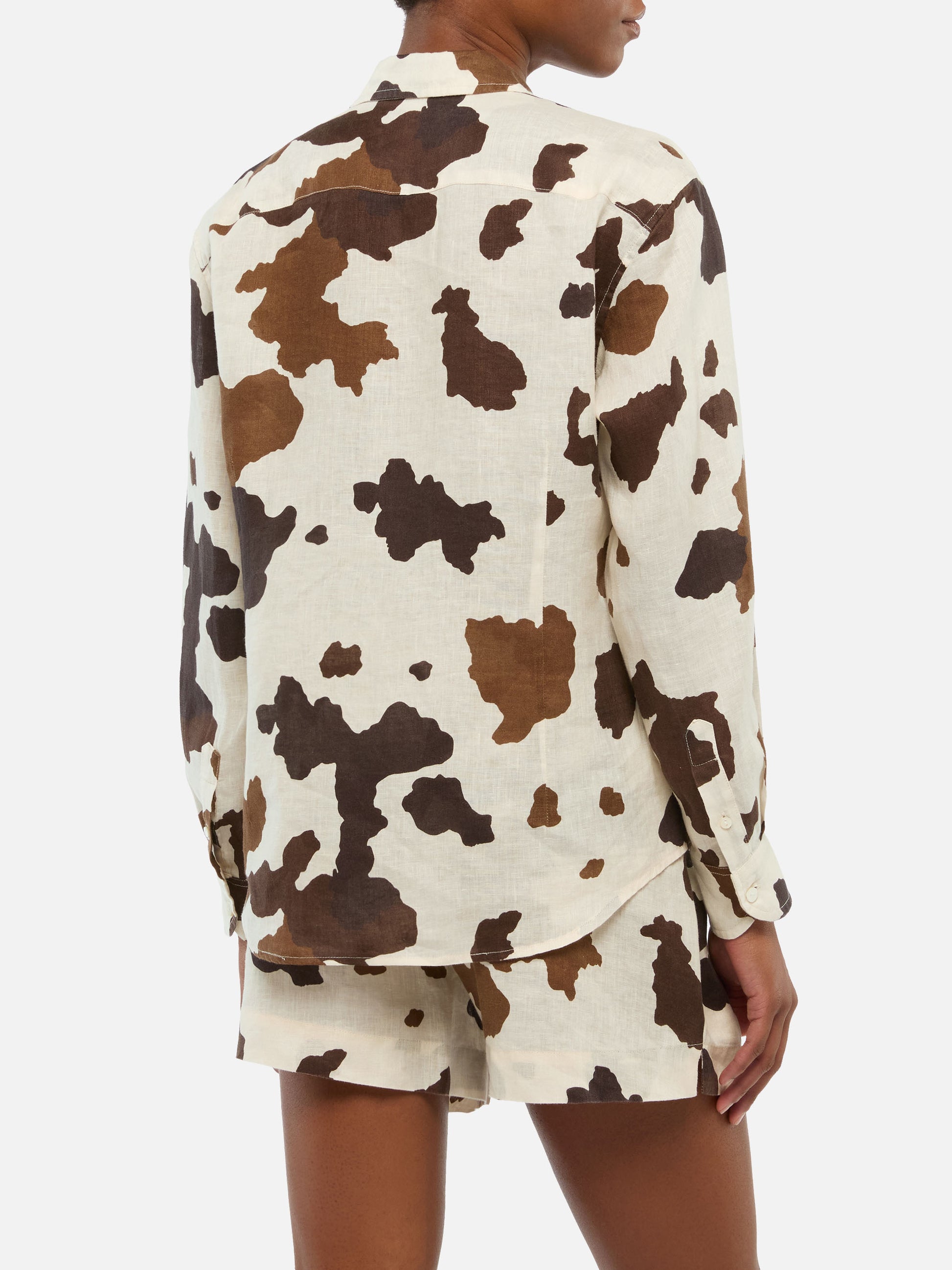 Borsa a spalla Vanity in canvas di cotone con stampa pelle di mucca