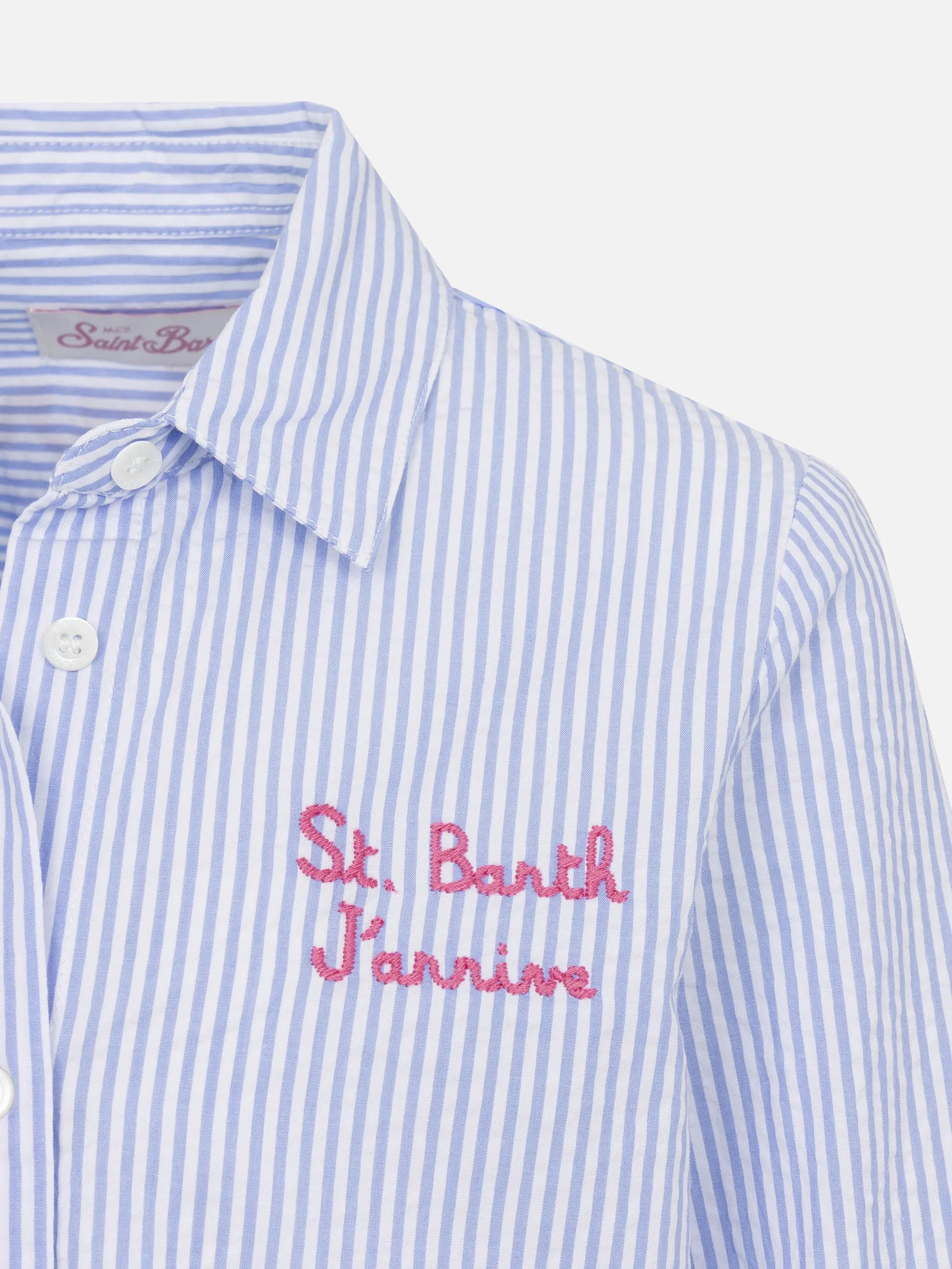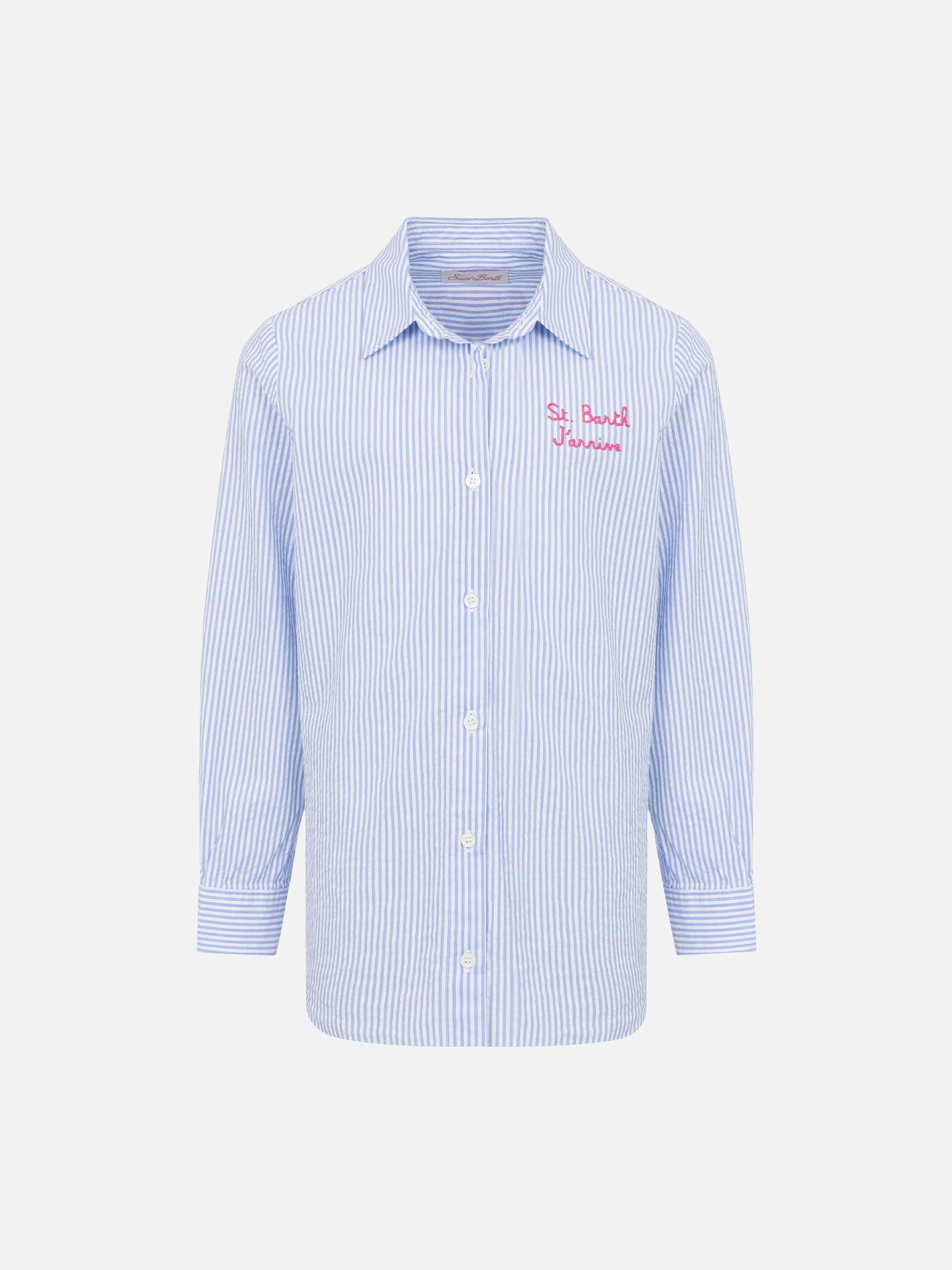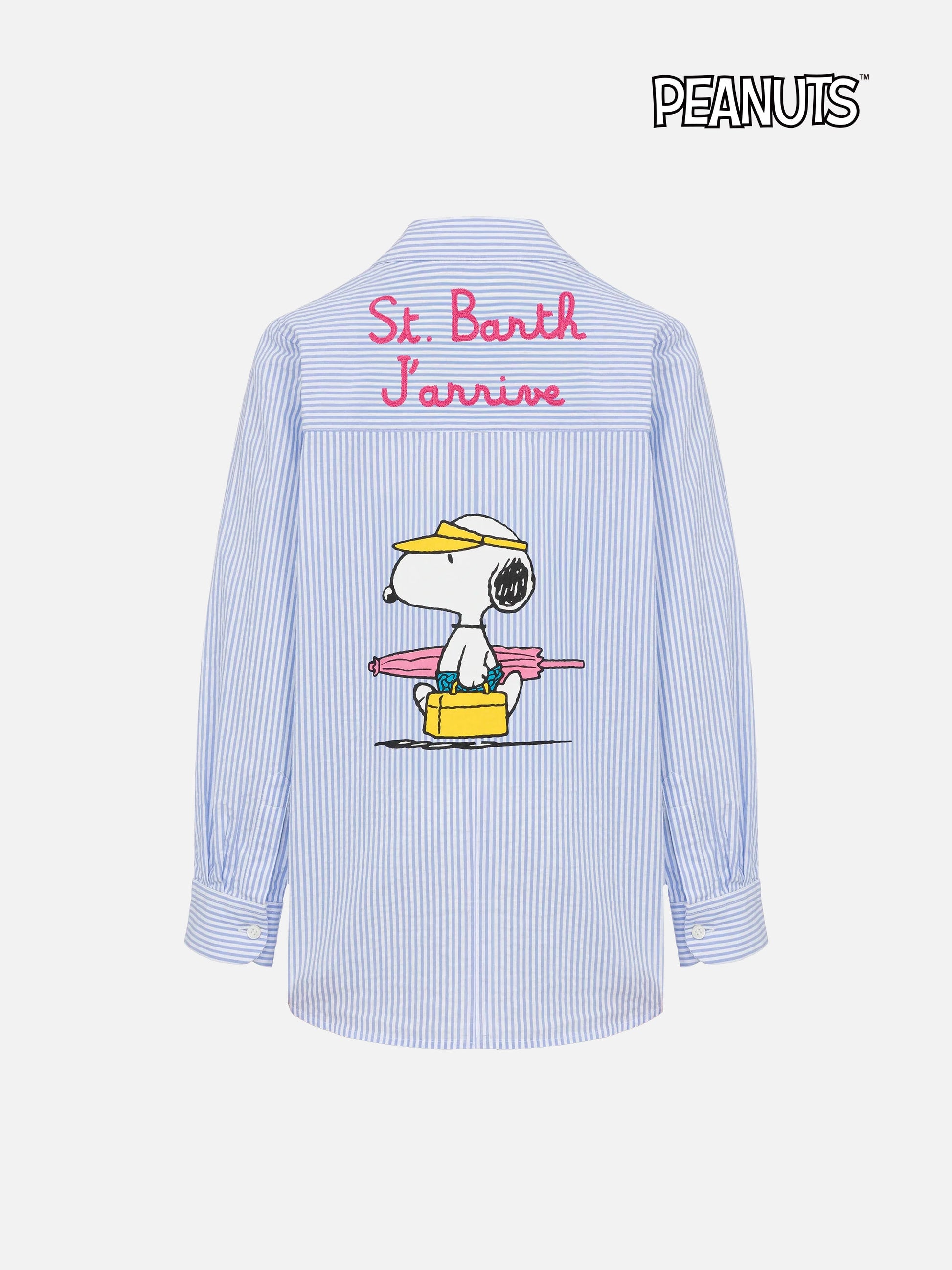 Camicia Mini Brigitte in seersucker a righe azzurre con stampa Snoopy | SNOOPY PEANUTS® SPECIAL EDITION
