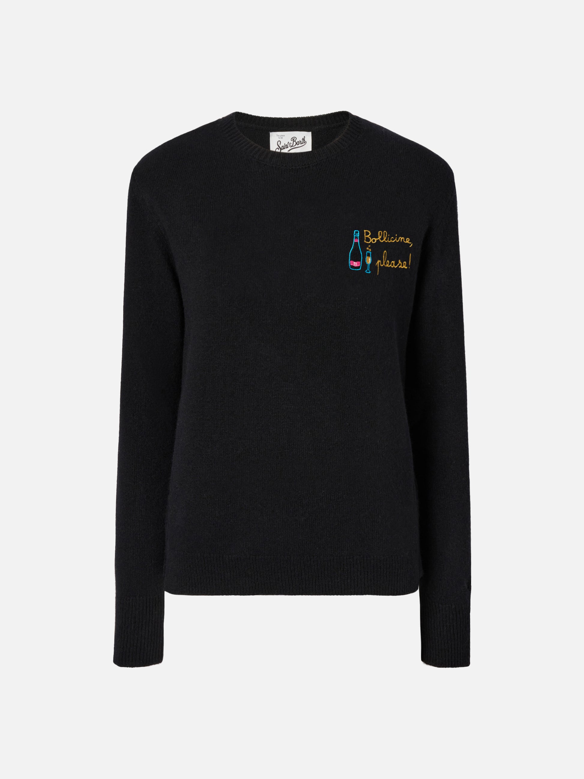 Maglione New Queen in misto cashmere nero con ricamo Bollicine, please