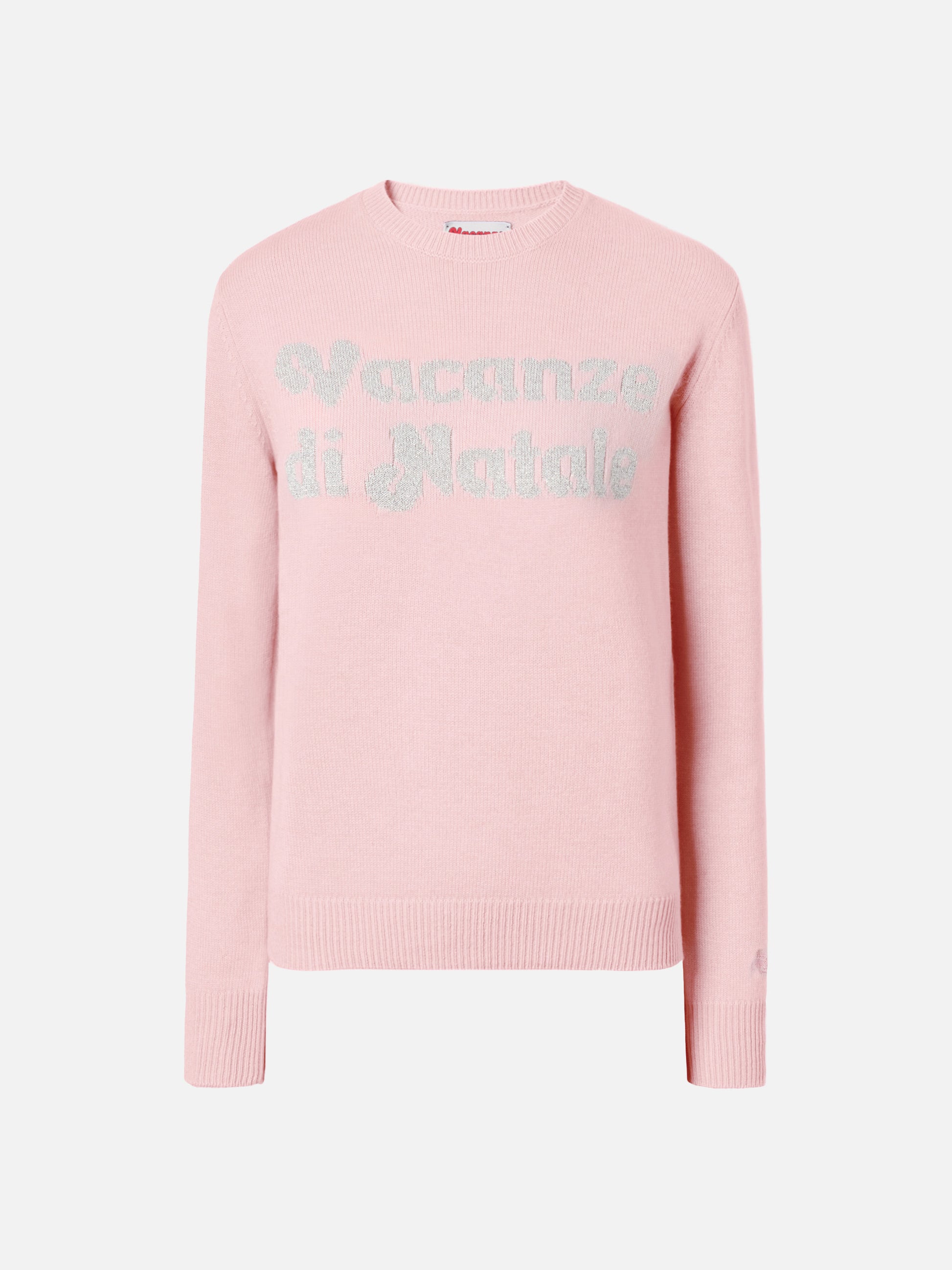 Maglione New Queen in misto cashmere rosa con jacquard lurex Vacanze di Natale | VACANZE DI NATALE SPECIAL EDITION