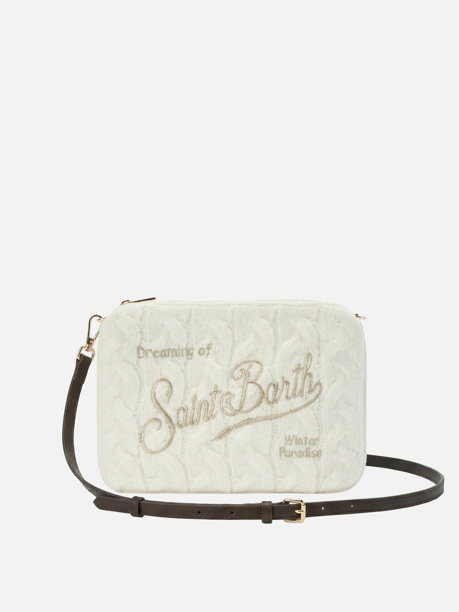 Borsa crossbody Parisienne Wool Braid in misto lana a trecce bianca