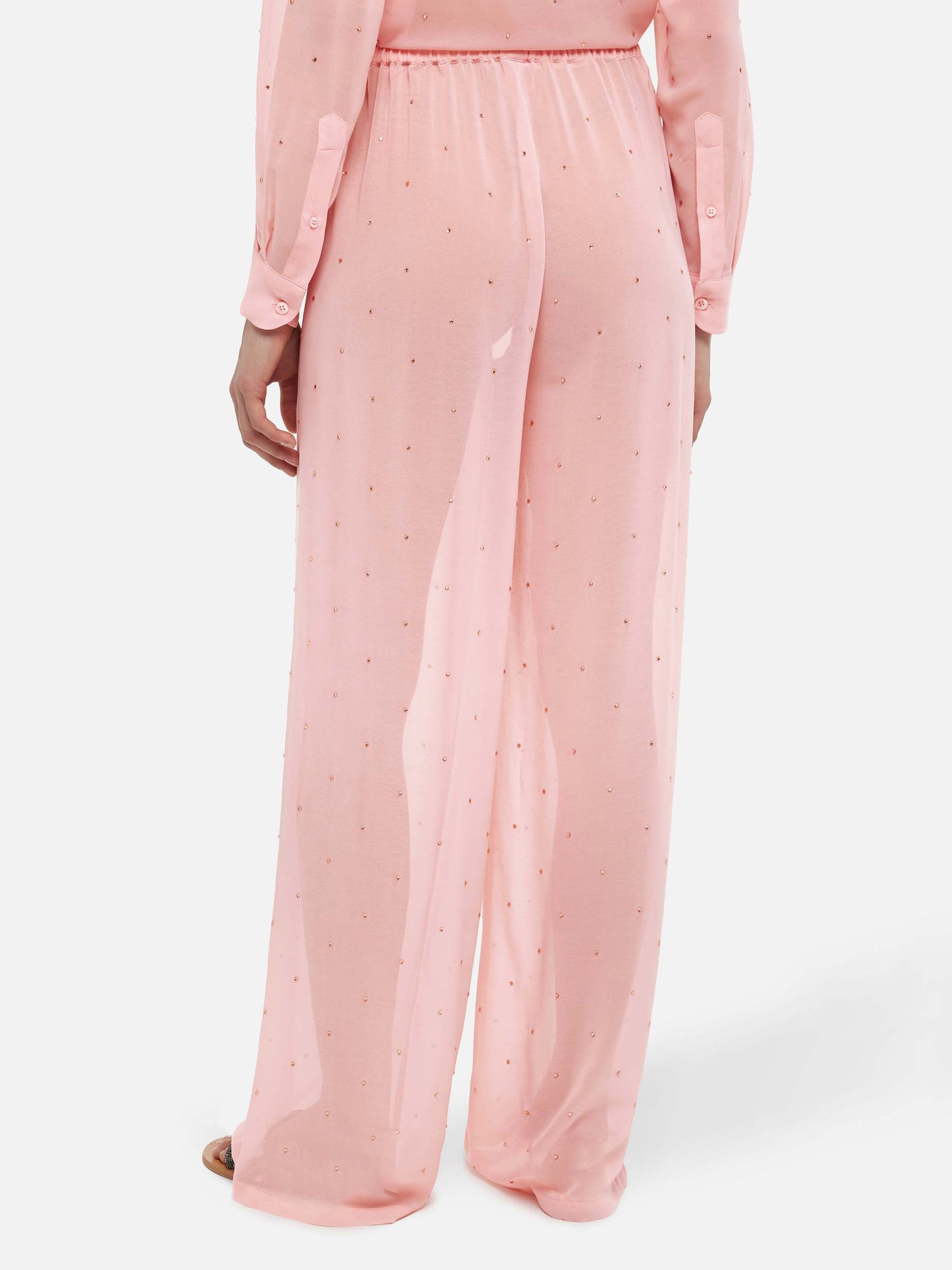 Pantaloni ampi Amalia in georgette rosa con strass