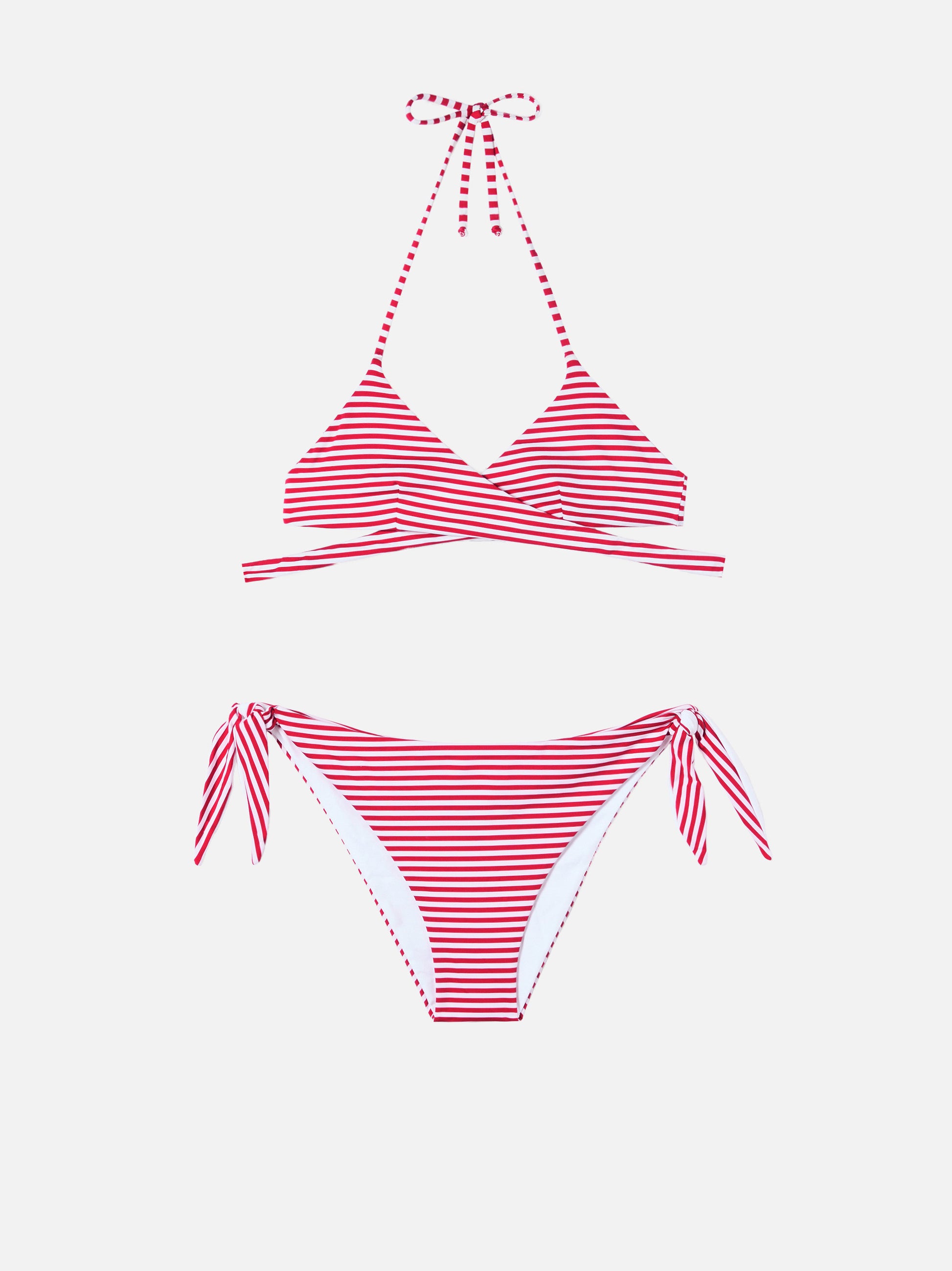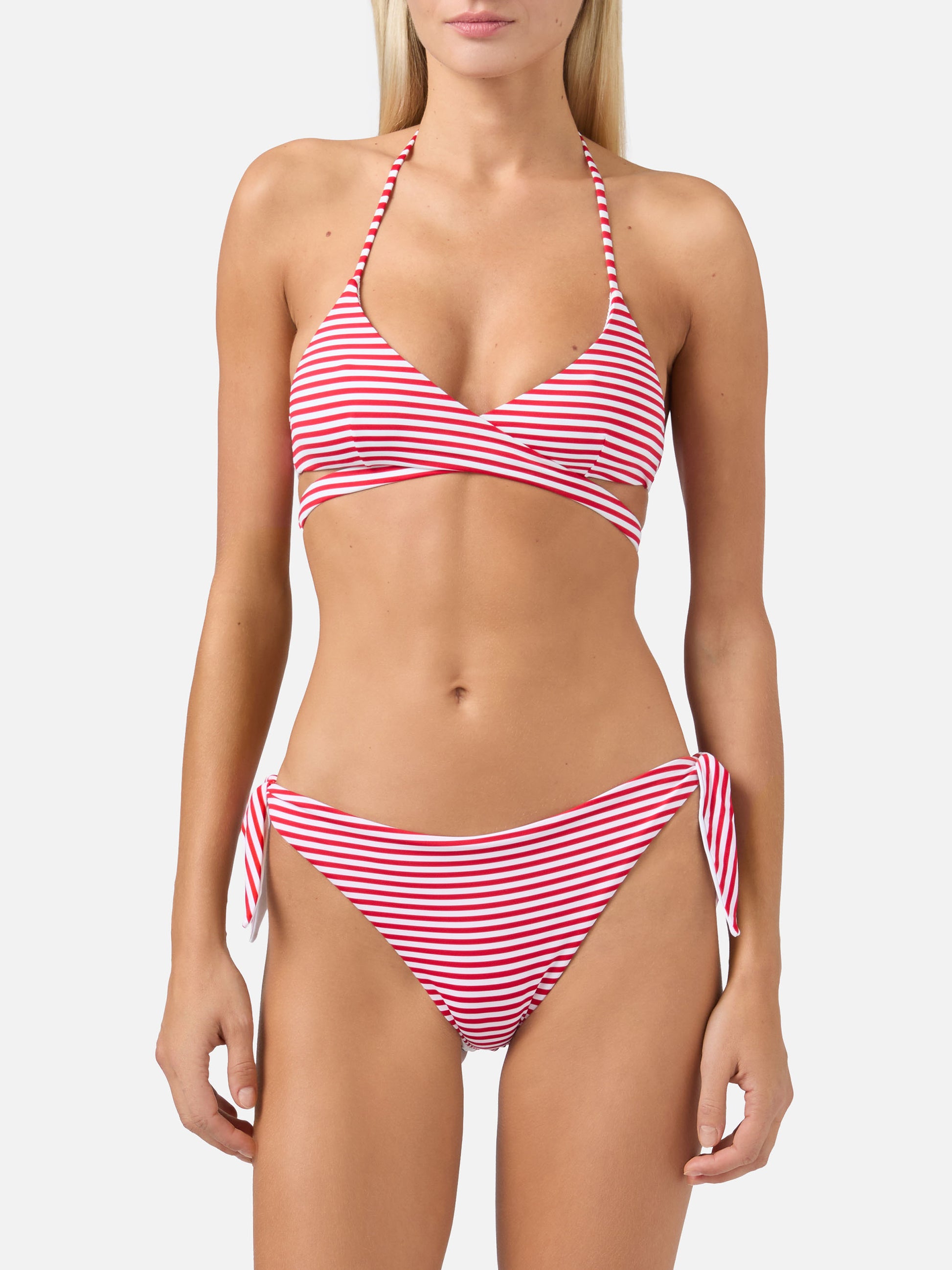 Bikini a triangolo avvolgente Layne Yali con stampa a righe rosse