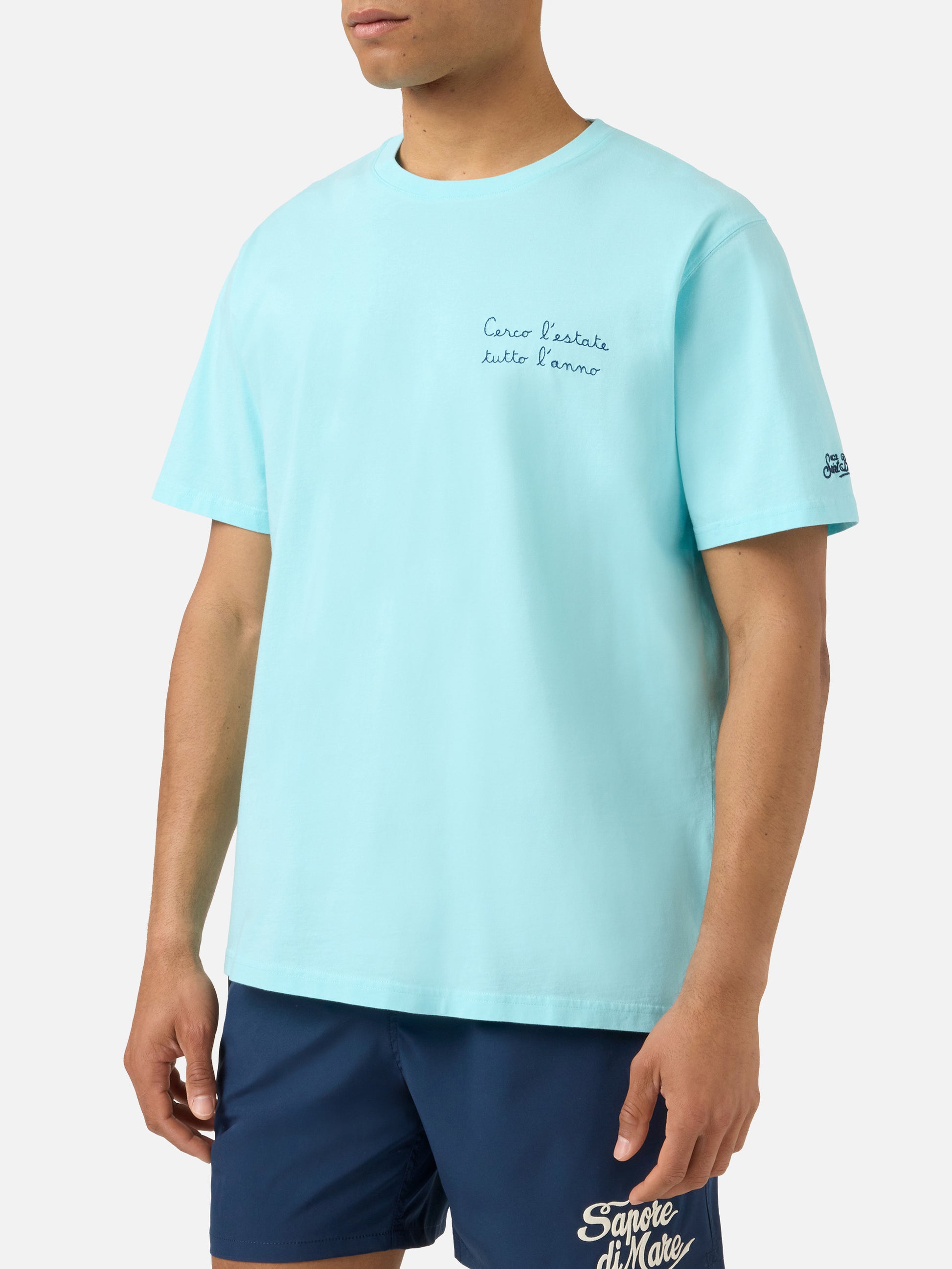 Aqua green Portofino T-shirt with Cerco L'estate Tutto L'anno embroidery