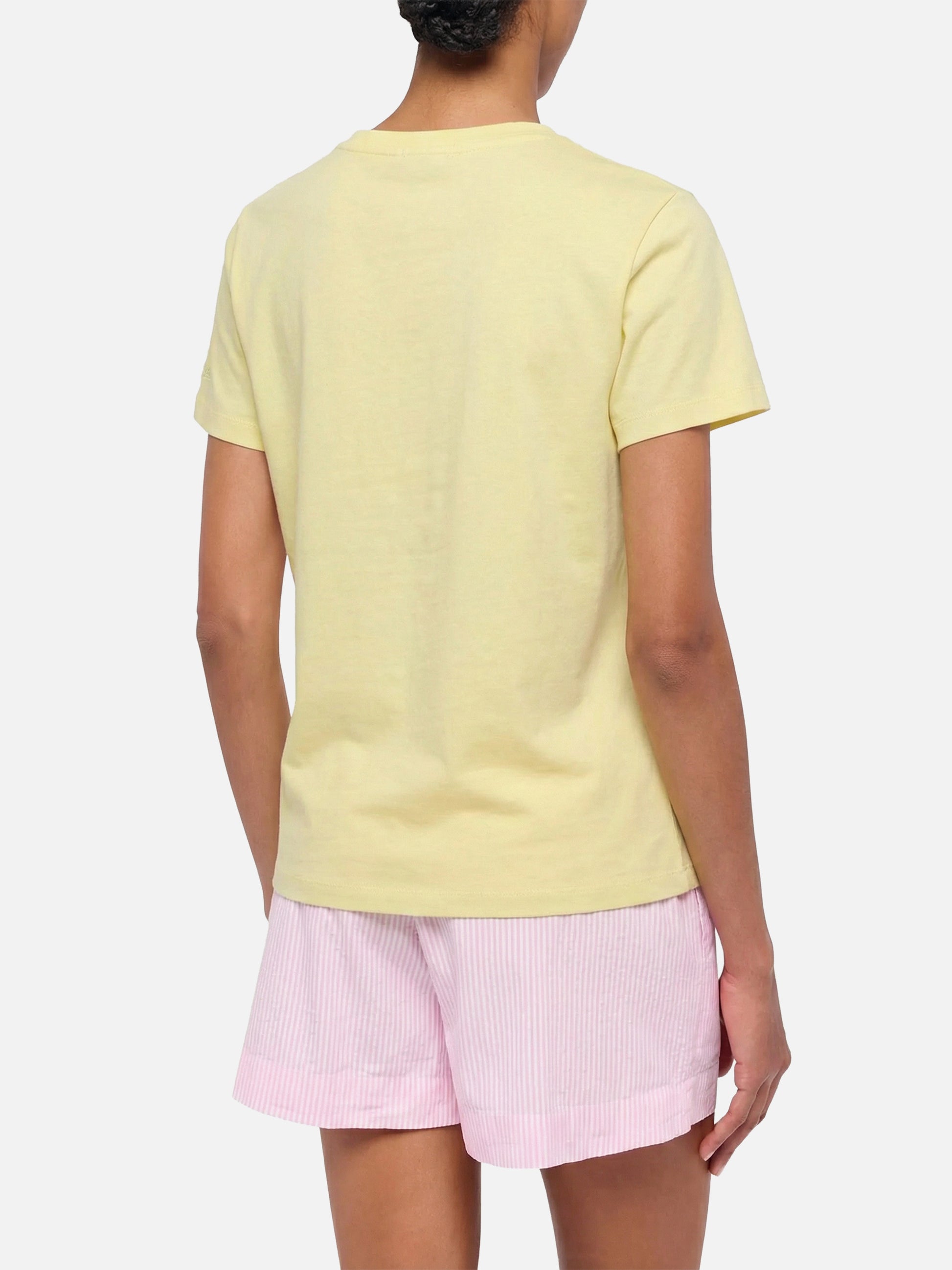 Emilie yellow cotton T-shirt with 50% Sole 50% Amore embroidery
