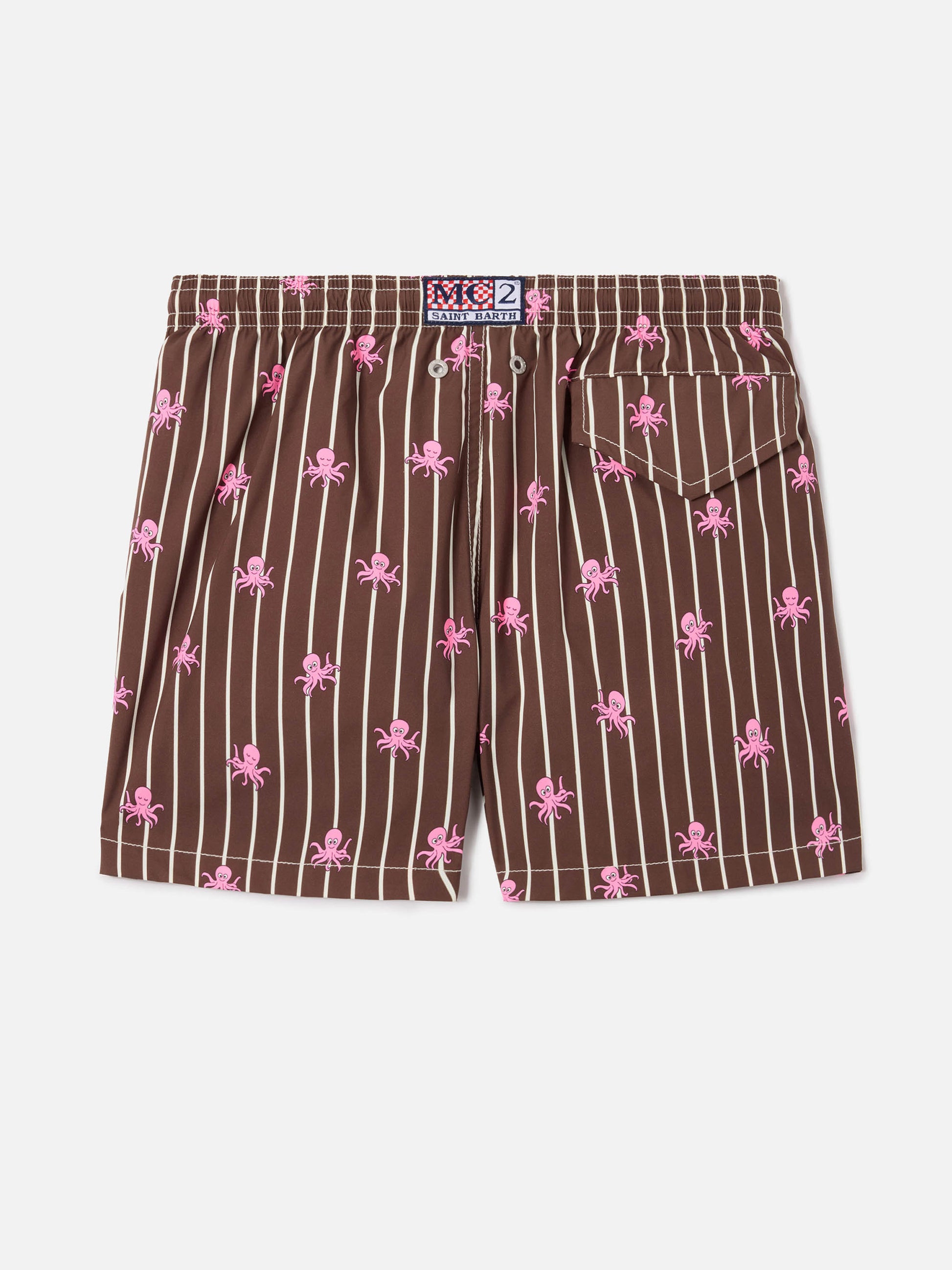 Jean Lighting Stretch swim shorts striped with all-over octopus print