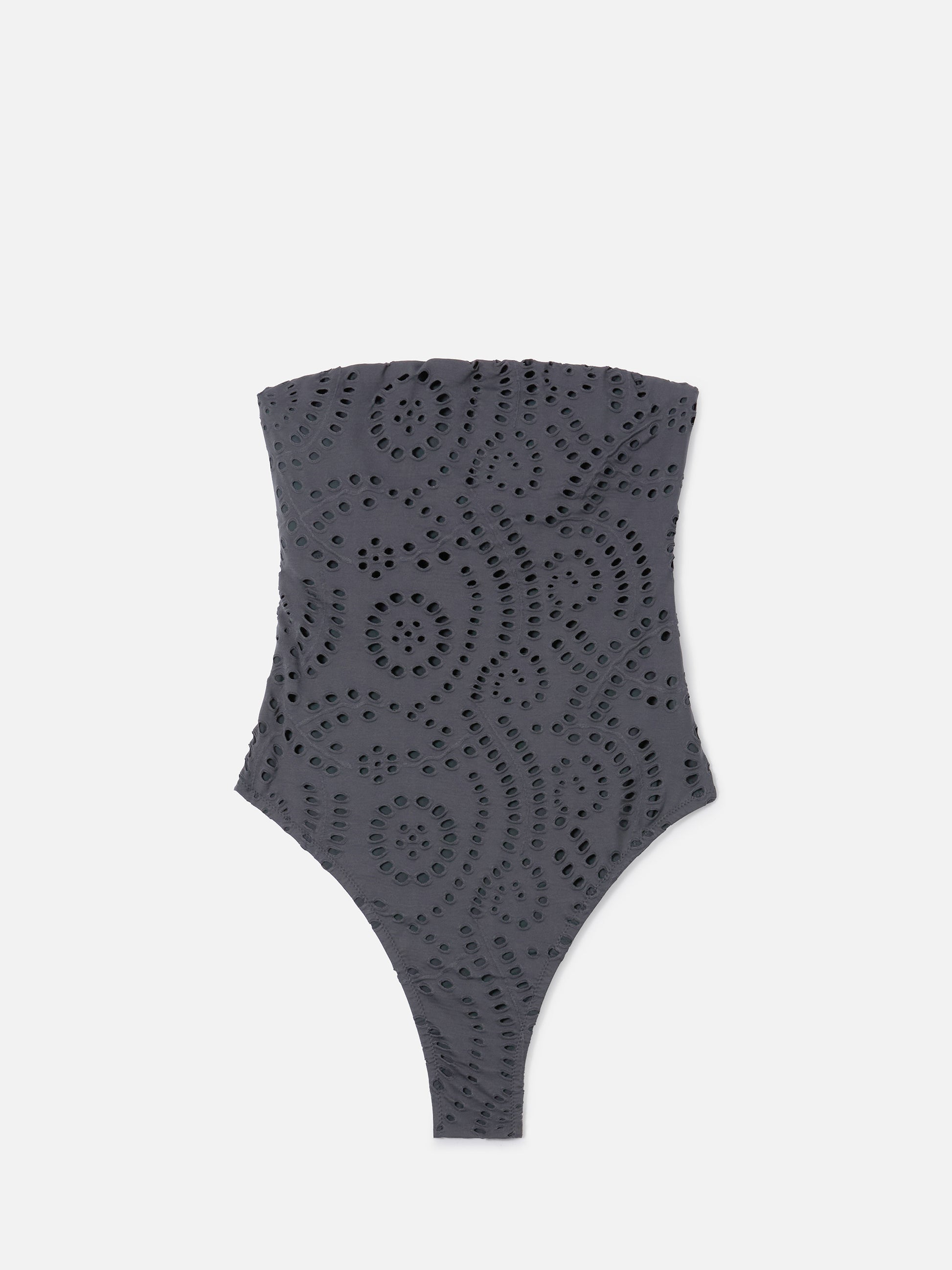 Khyra bandeau one-piece swimsuit in dark grey sangallo textile