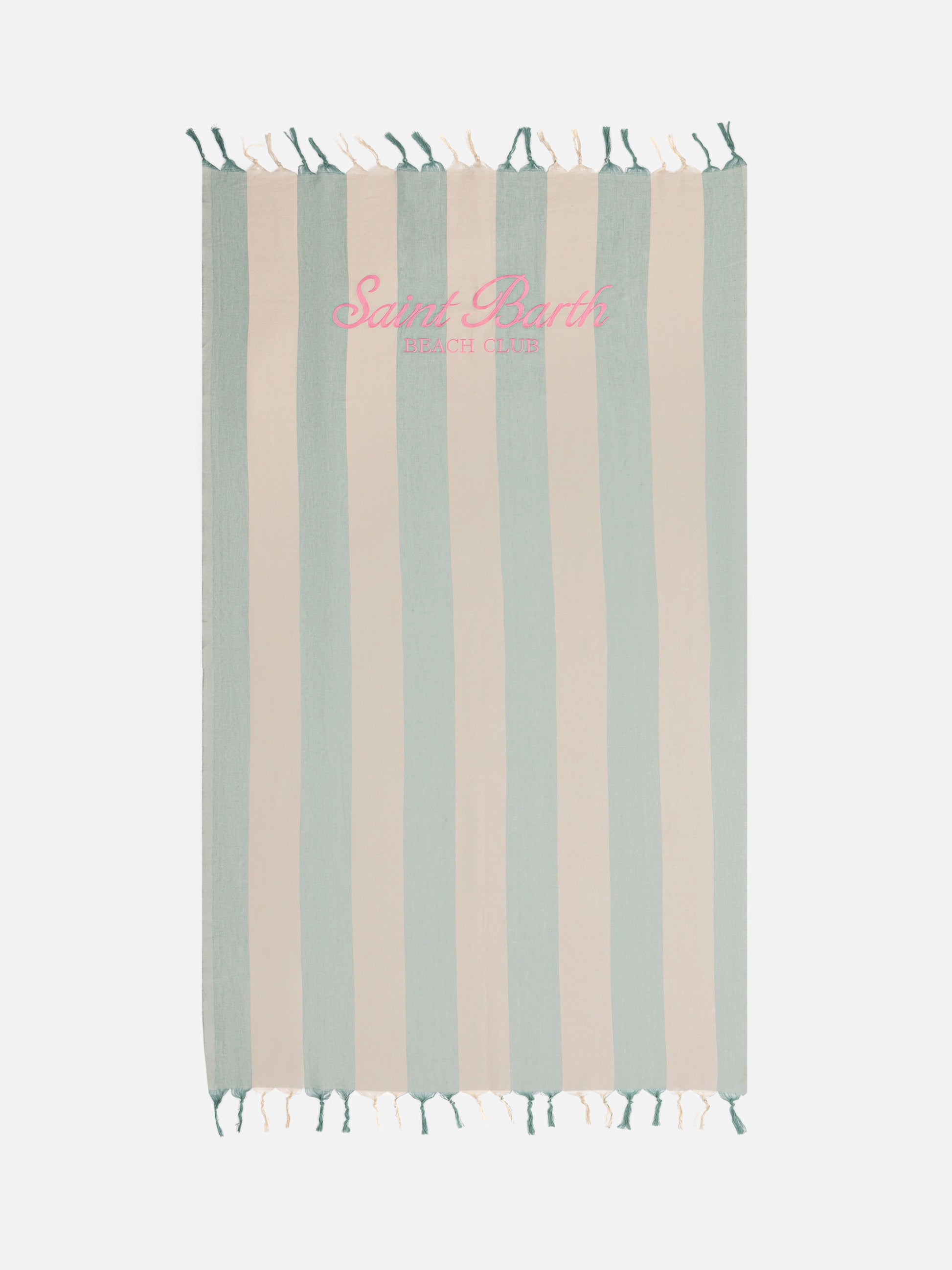Light cotton Fouta beach towel with sage green striped print - MC2 Saint Barth