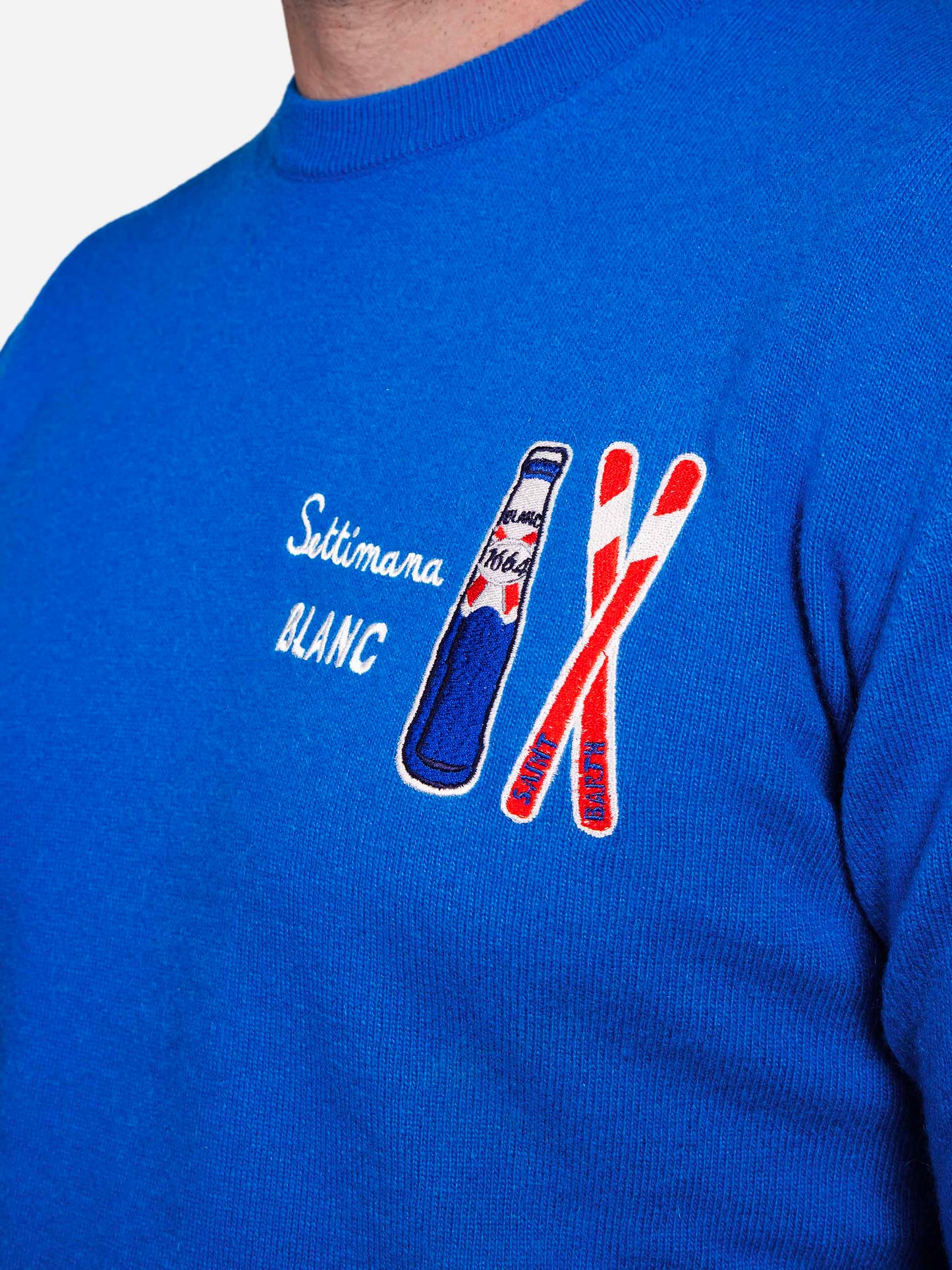 Man bluette sweater Heron Light with Settimana Blanc embroidery | BLANC 1664 SPECIAL EDITION