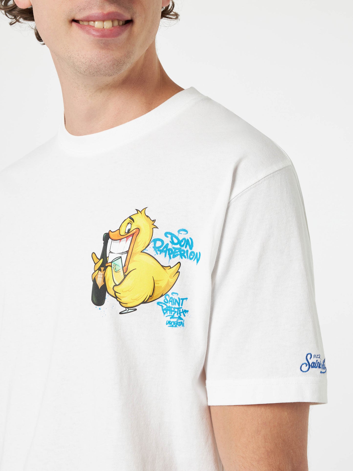 Man cotton t-shirt with Cryptopuppets Ducky Bollicine front and back placed print | CRYPTOPUPPETS SPECIAL EDITION