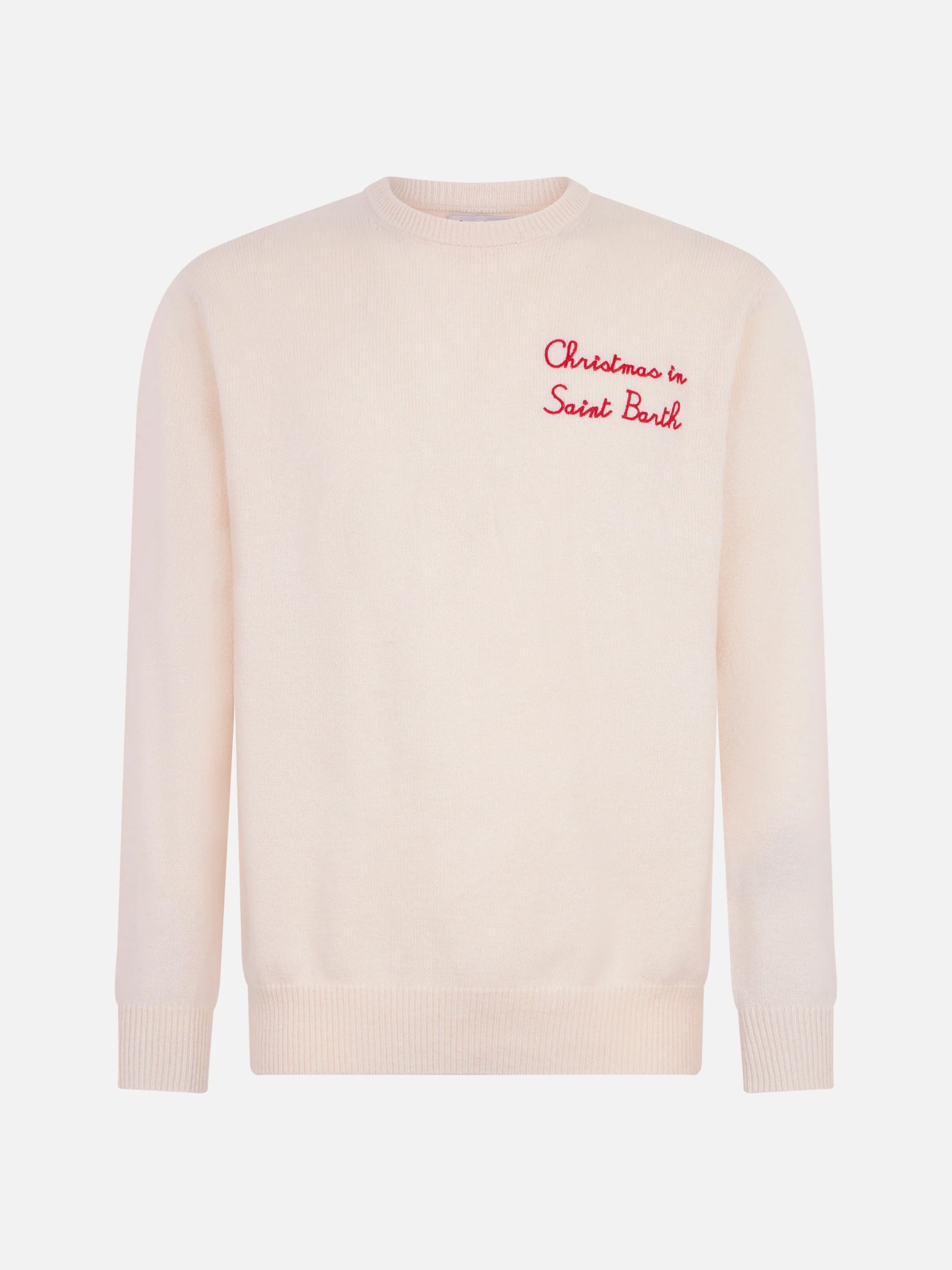 Crewneck sweater Heron with Christmas in Saint Barth embroidery