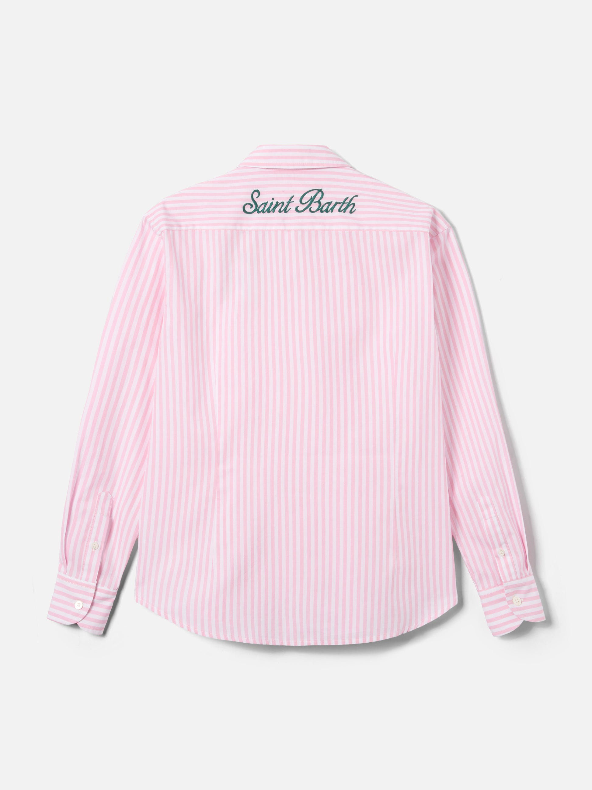Meredith cotton shirt with pink stripes and Saint Barth embroidery