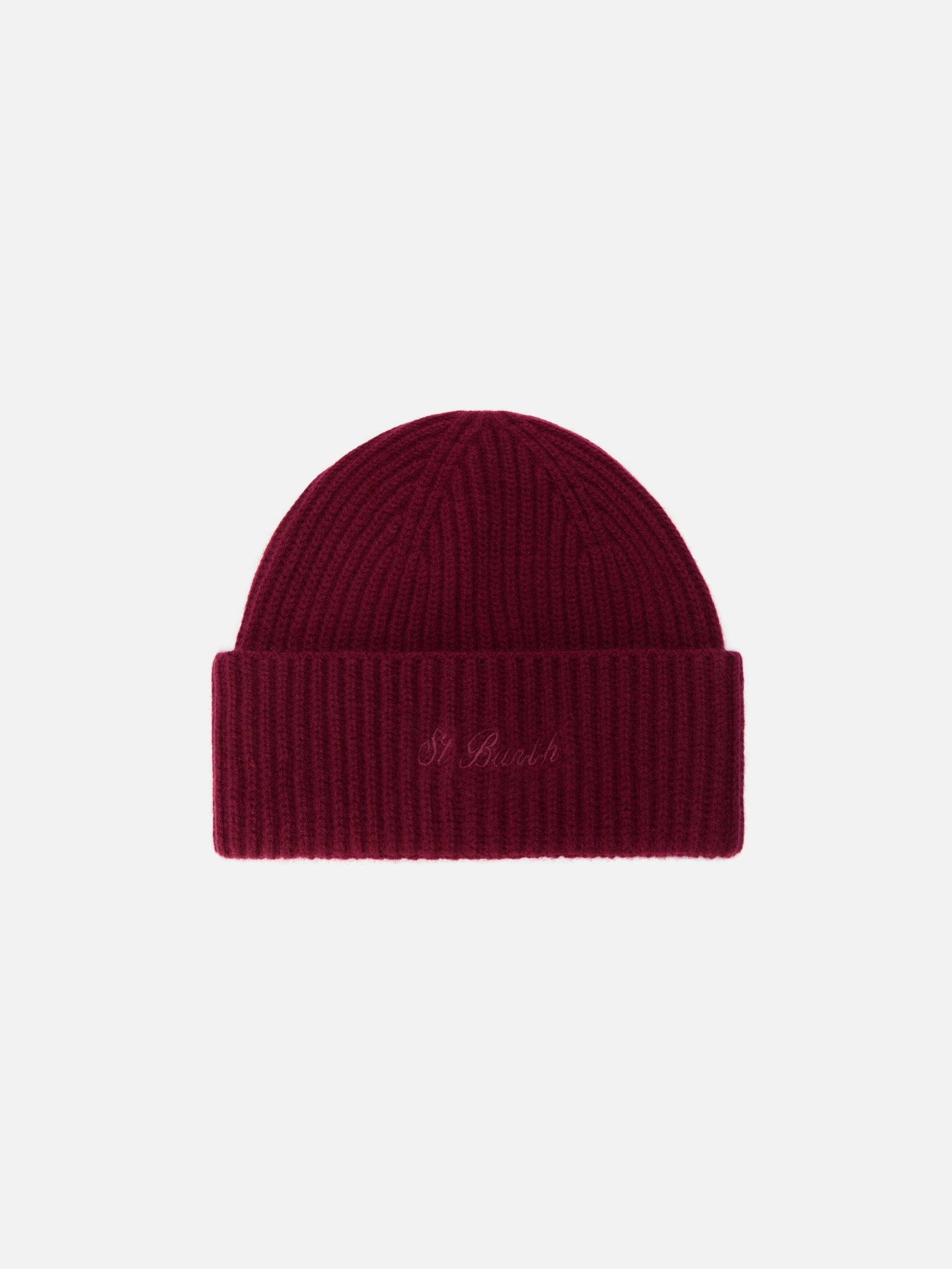 Moss Beanie in burgundy 100% WOOL with St. Barth embroidery