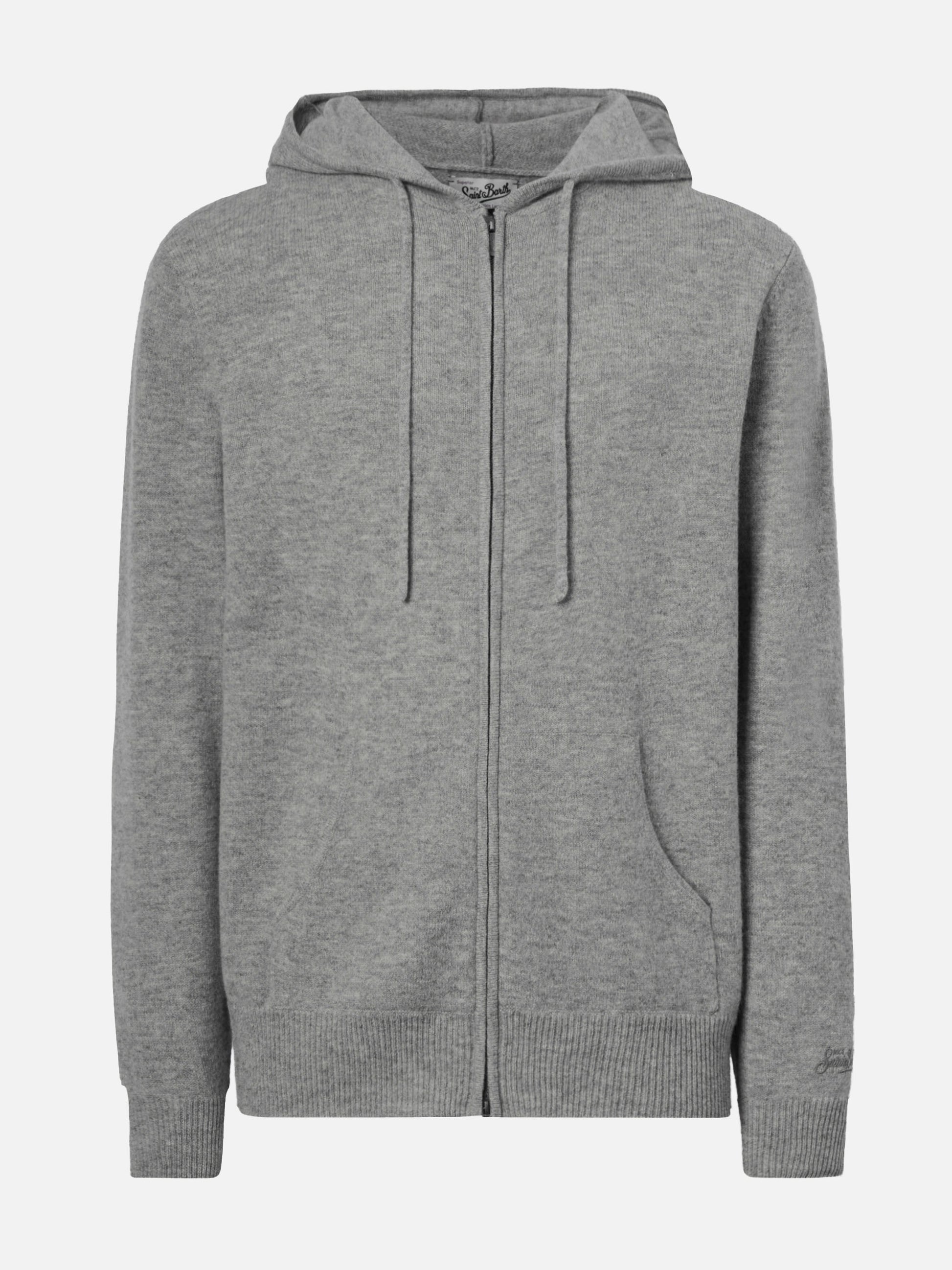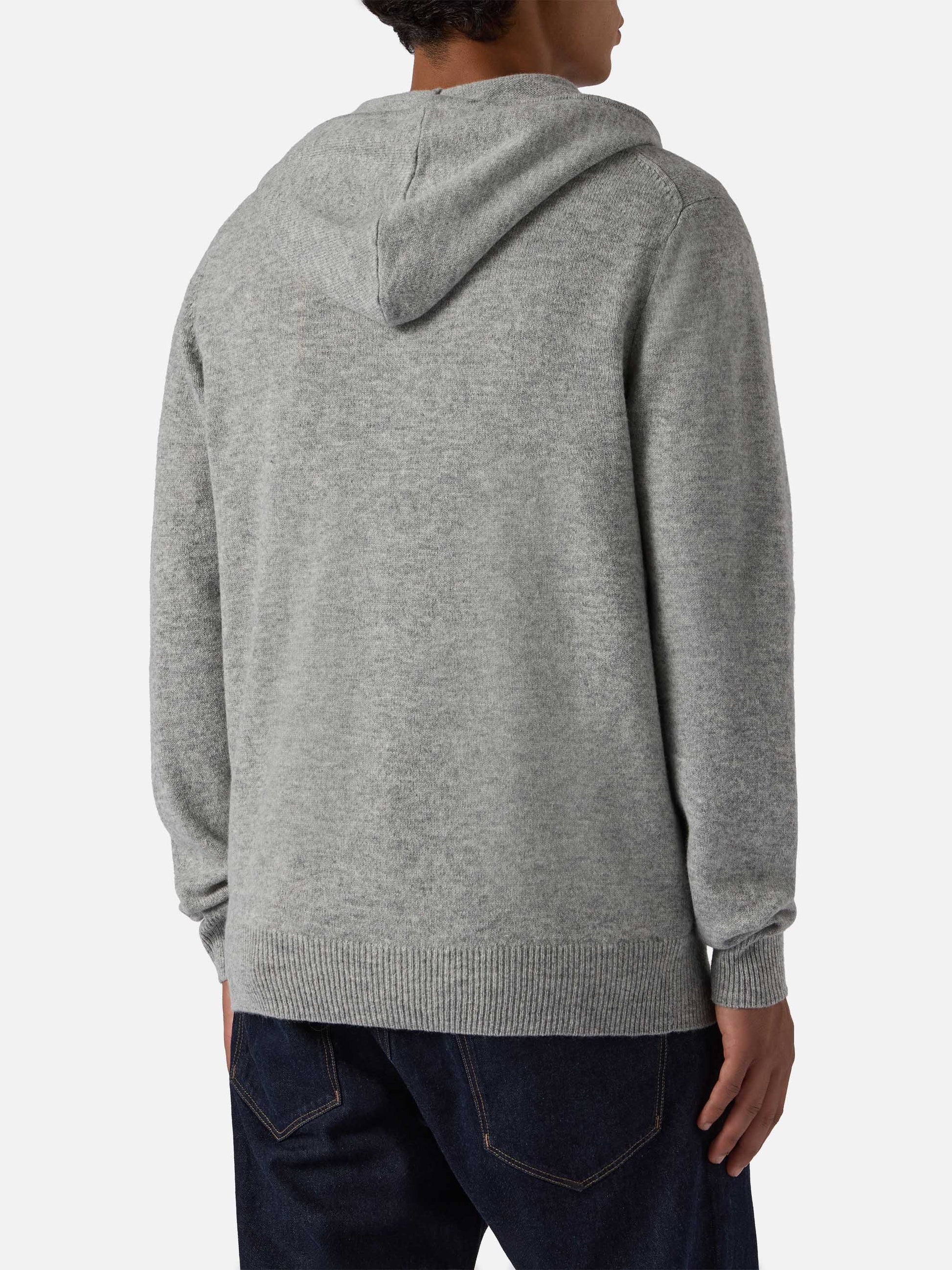 Notting grey melange is the full-zip knit hoodie that simplifies layering—casual and functional, perfect for travel, city life, and downtime.