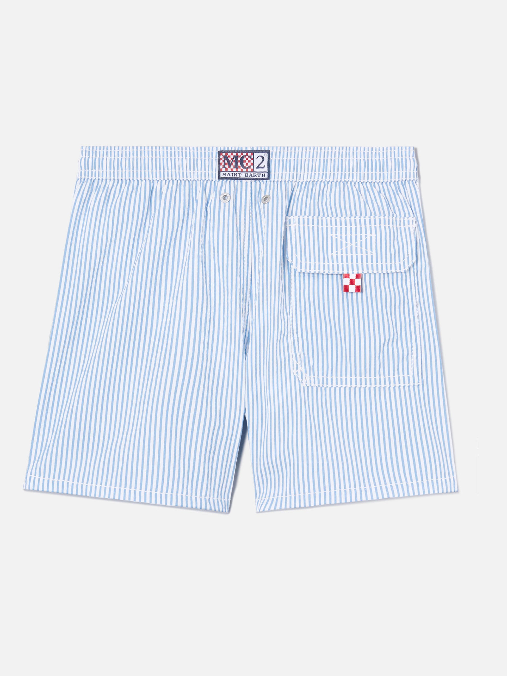 https://it.mc2saintbarth.com/products/patmos-jr-seersucker-swim-shorts-striped-with-st-barth-embroidery-110726818775386Patmos Jr seersucker swim shorts striped with St. Barth embroidery99.00https:files/UID_PATM00201706L-BOY-SWIMSHORT-SKY-MC2-MC2_def_1.jpghttps:files/UID_PATM00201706L-BOY-SWIMSHORT-SKY-MC2-MC2_def_1.jpgEURInStockSWIMSHORT649134276954AVADA - Best Sellers288893567160Boy - View All Swimwear279983718584Boy printed swim shorts674143961434Boy Printed Swim Shorts674144715098Boy Quick-Dry Swim Shorts674143043930Boy Swim Shorts280043487416Father & Son Swimwear603371077978Swimshorts AllThe Patmos Jr boys swim shorts are crafted from lightweight, breathable seersucker fabric, ideal for summer days. The light blue striped base is enhanced by a contrasting St. Barth embroidery on the leg, creating a fresh and iconic look. An elasticated waistband with adjustable drawstring and an elasticated antibacterial inner mesh ensure comfort and ease of movement.