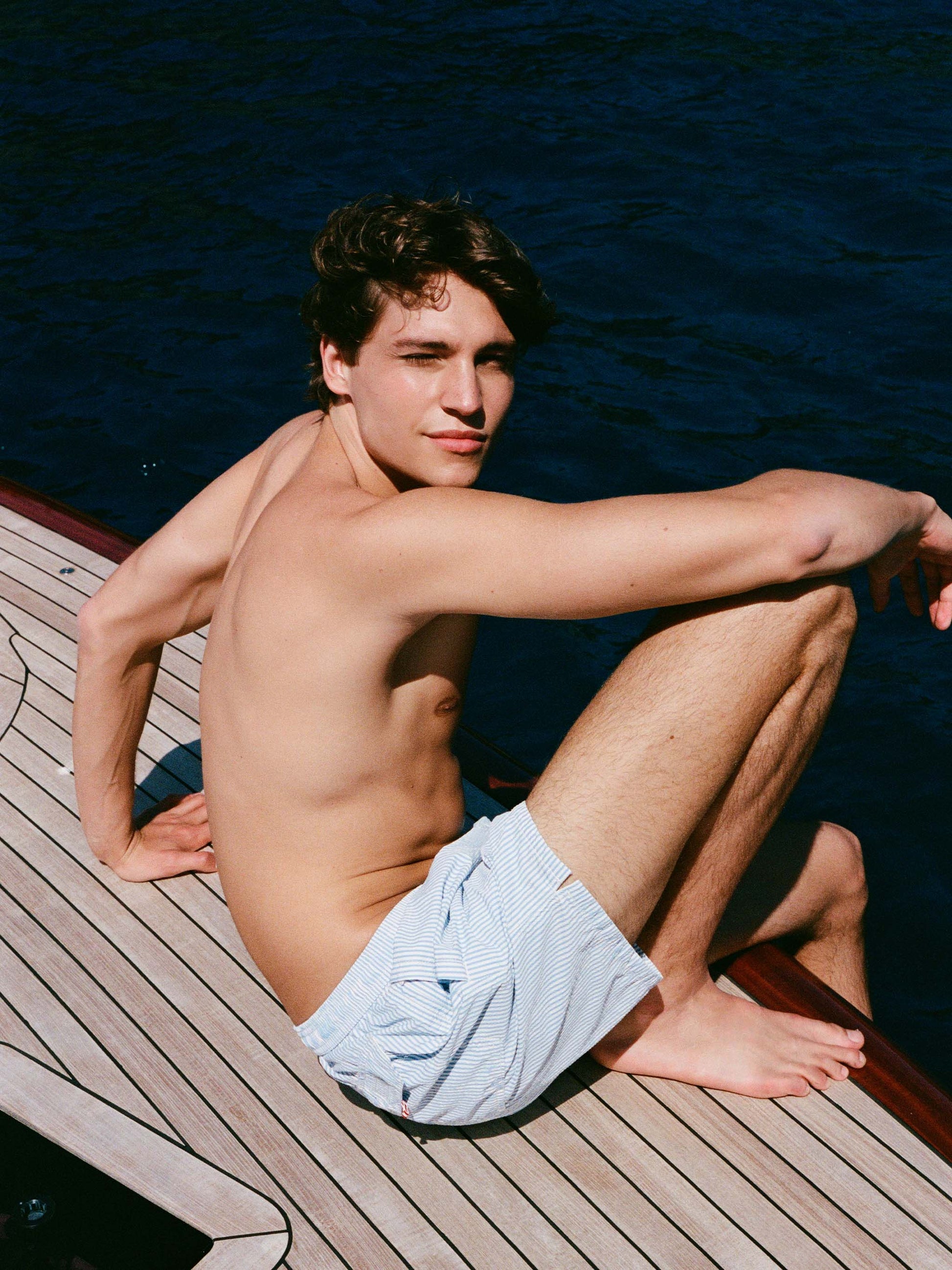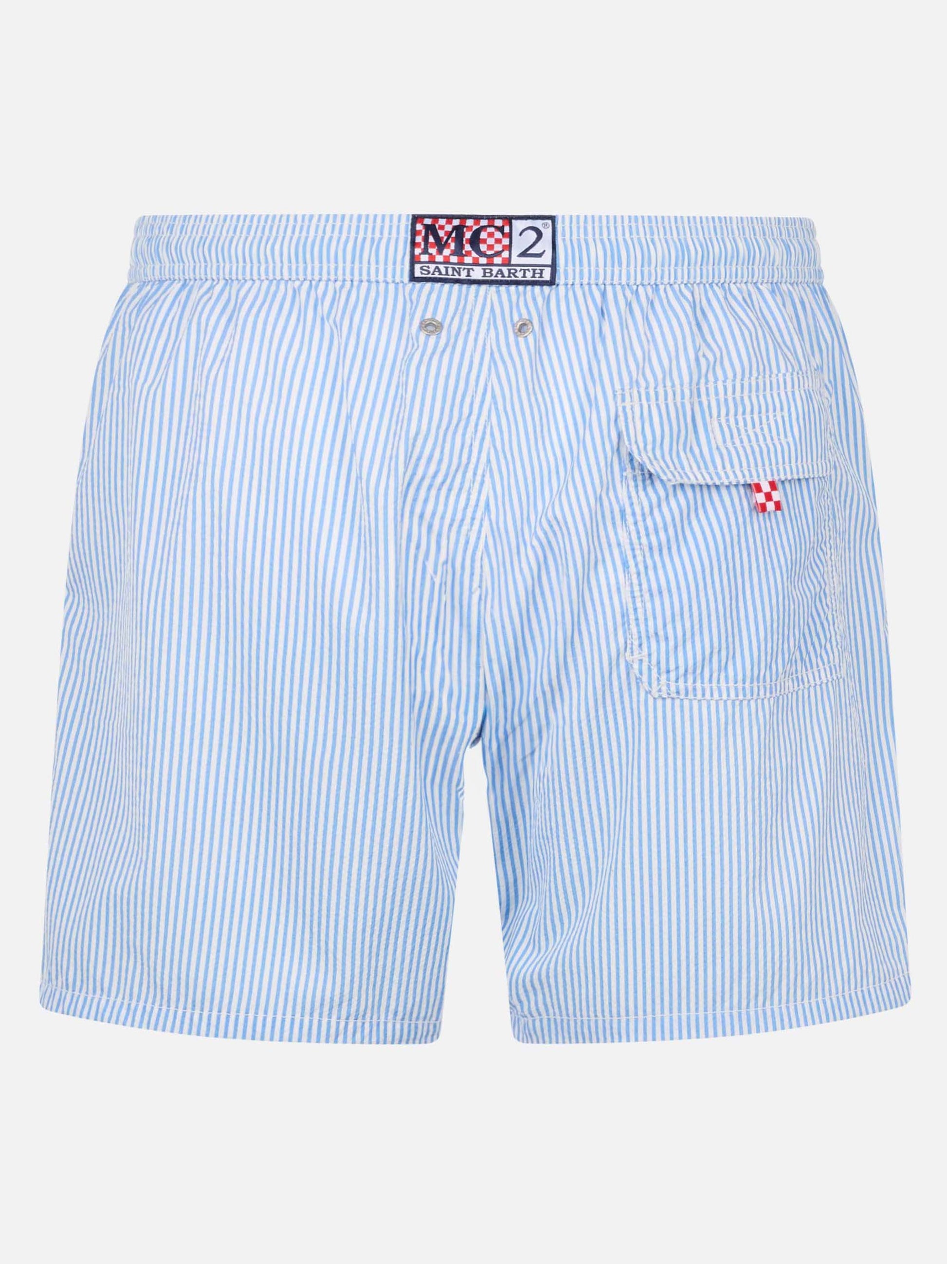 Seersucker light blue striped swim shorts Patmos