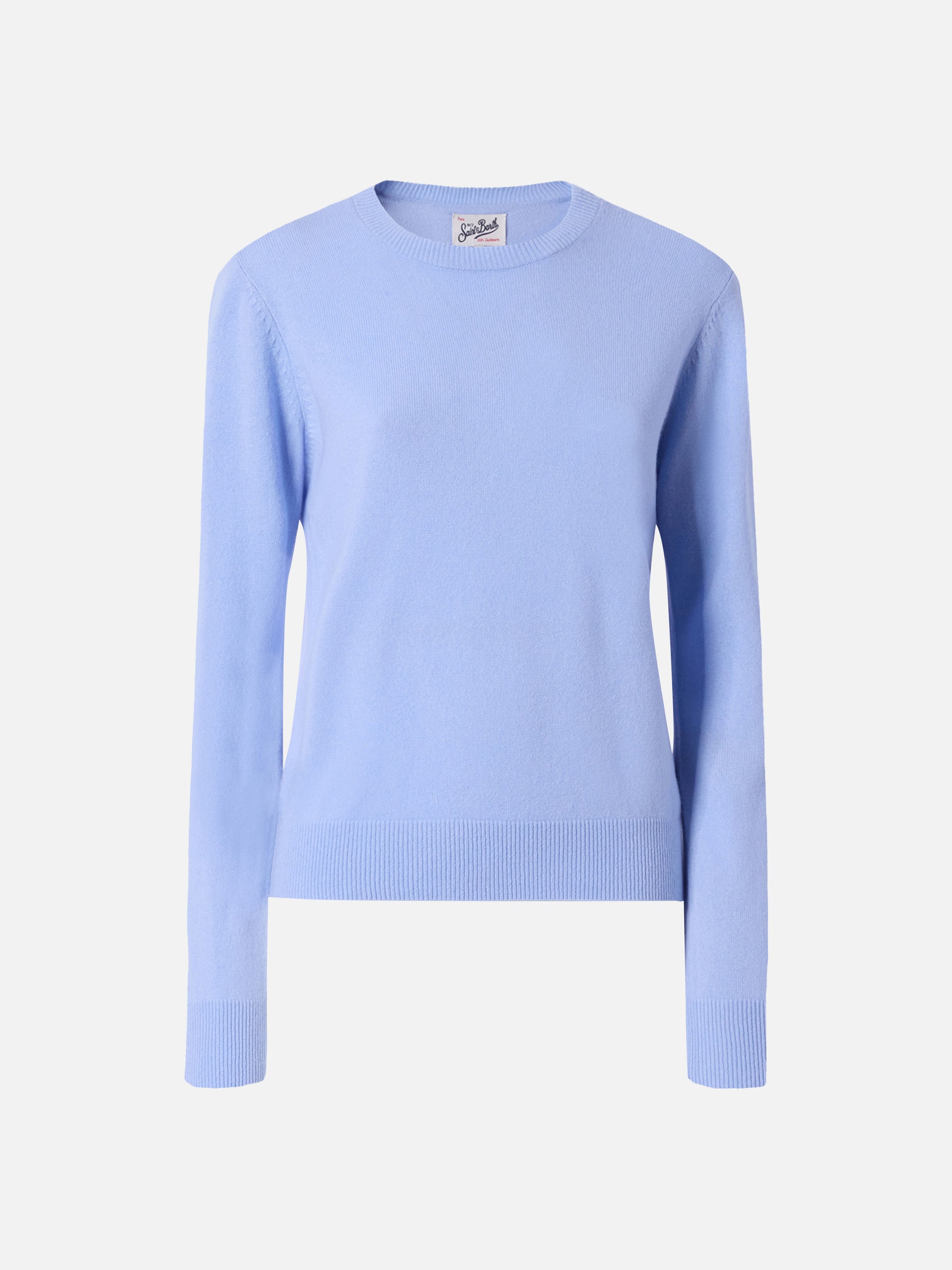 Sorbonne sweater in cashmere light blue with St. Barth embroidery