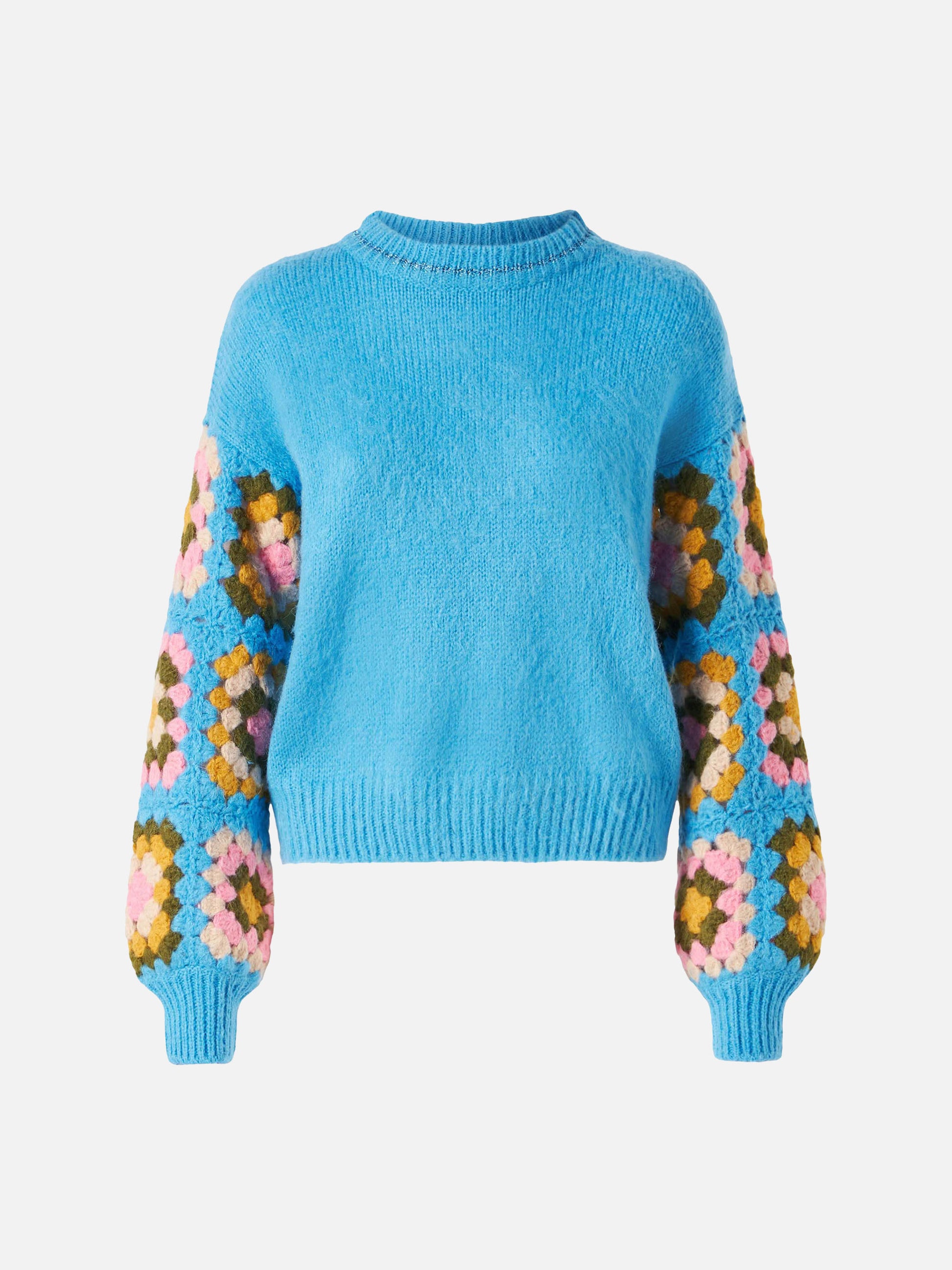 Ultra soft crewneck Danya Soft Crochet Jr with handmade crochet sleeves