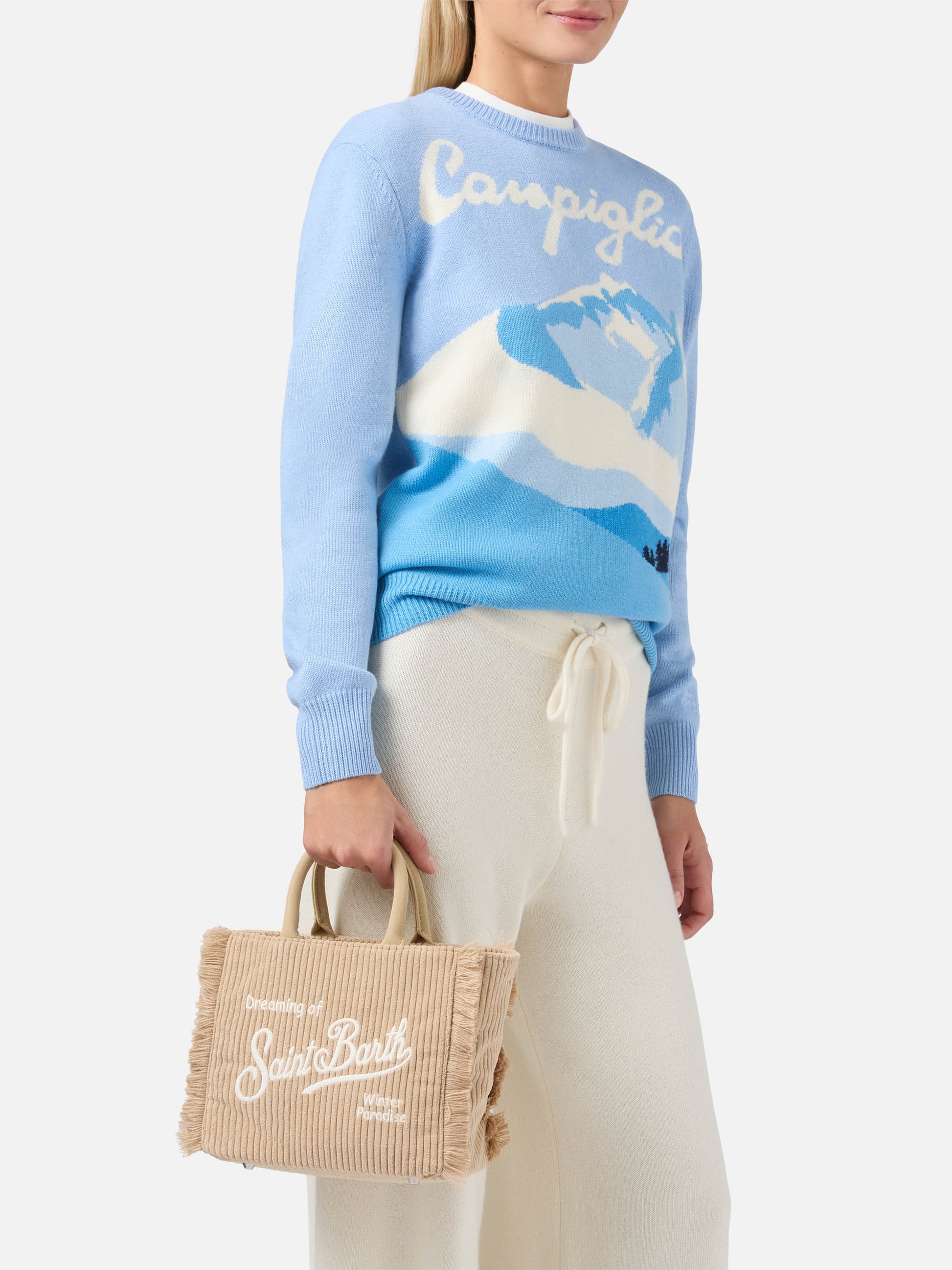 Vanity Mini Corduroy Handbag in beige corduroy velvet and faux suede