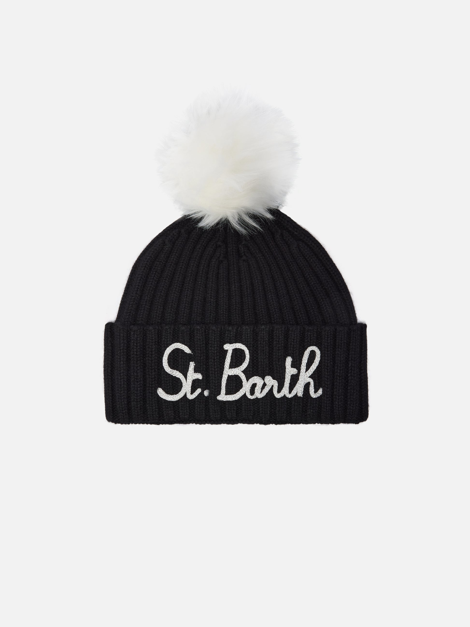Wengen beanie in cashmere blend in black with St. Barth embroidery and pom-pom