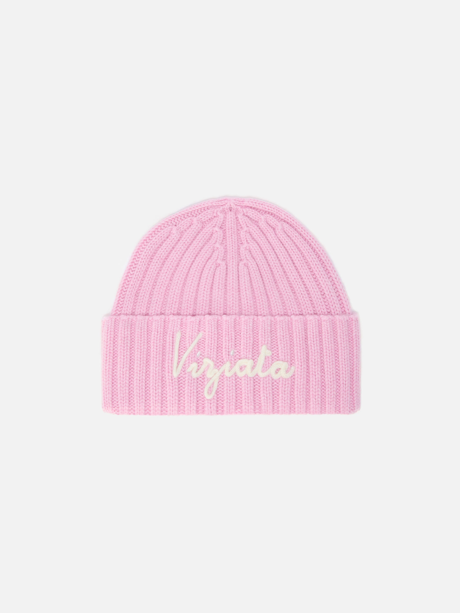Wengen beanie in cashmere blend in pink with Viziata embroidery