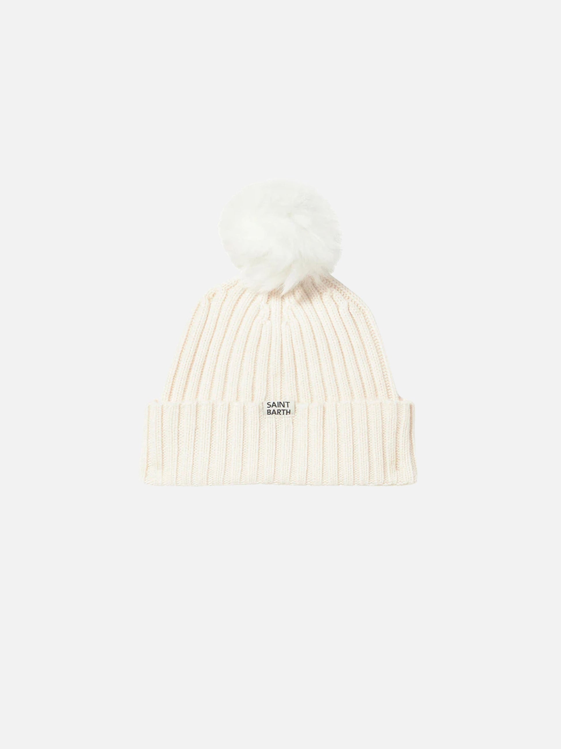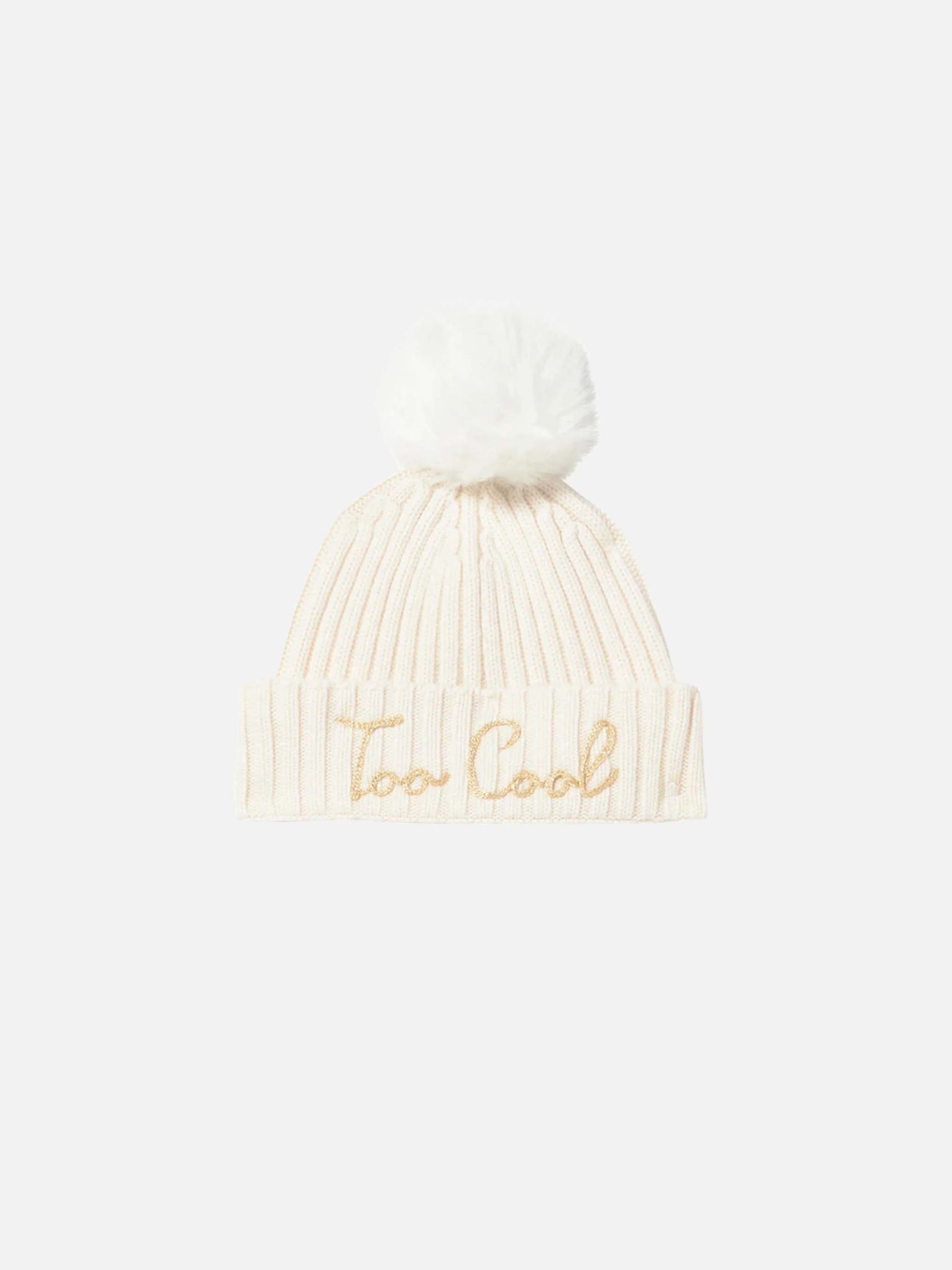 Wengen Jr beanie in cashmere blend in white with Favolosa embroidery