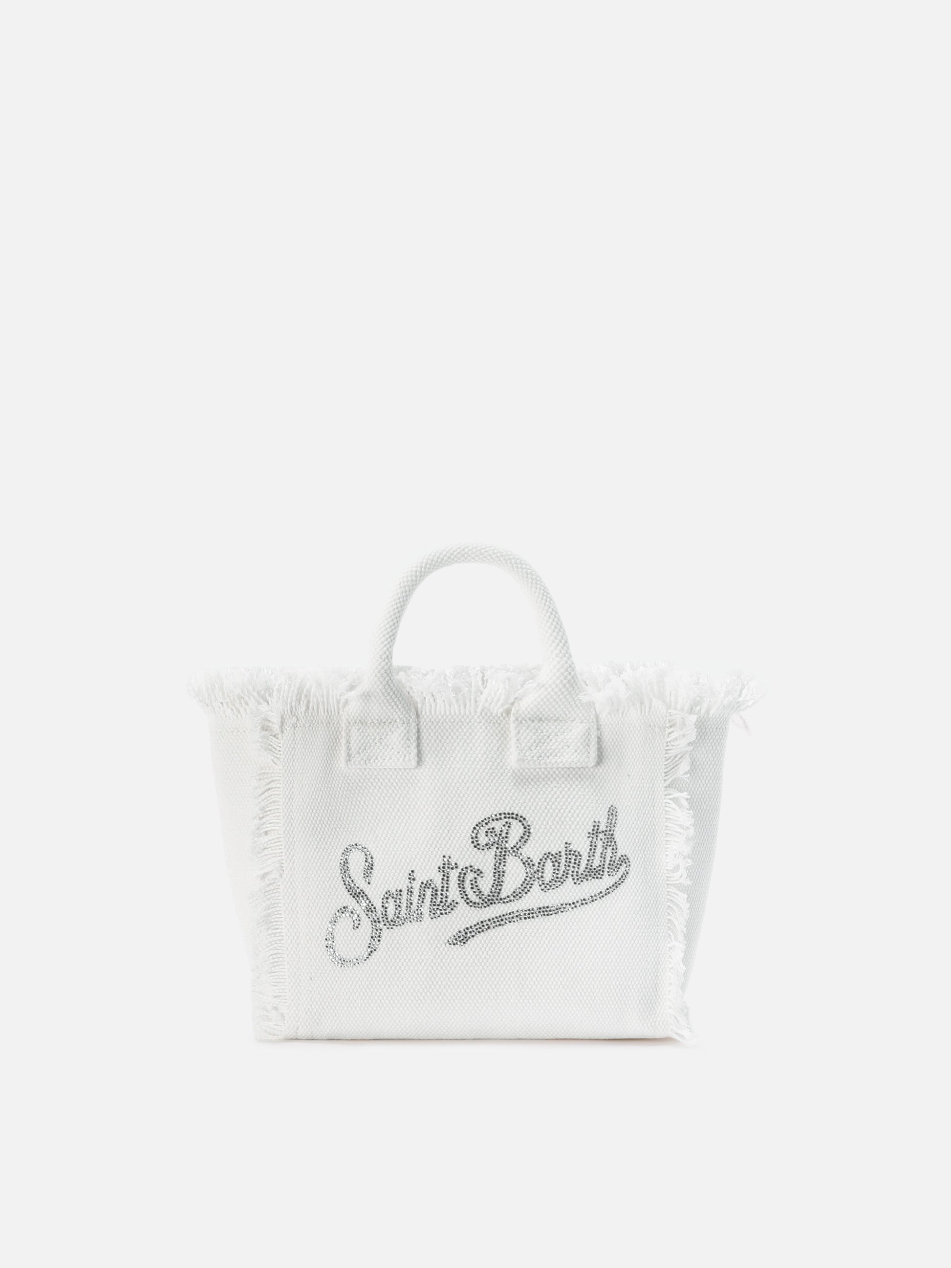 White canvas Vanity mini bag with rhinestone logo