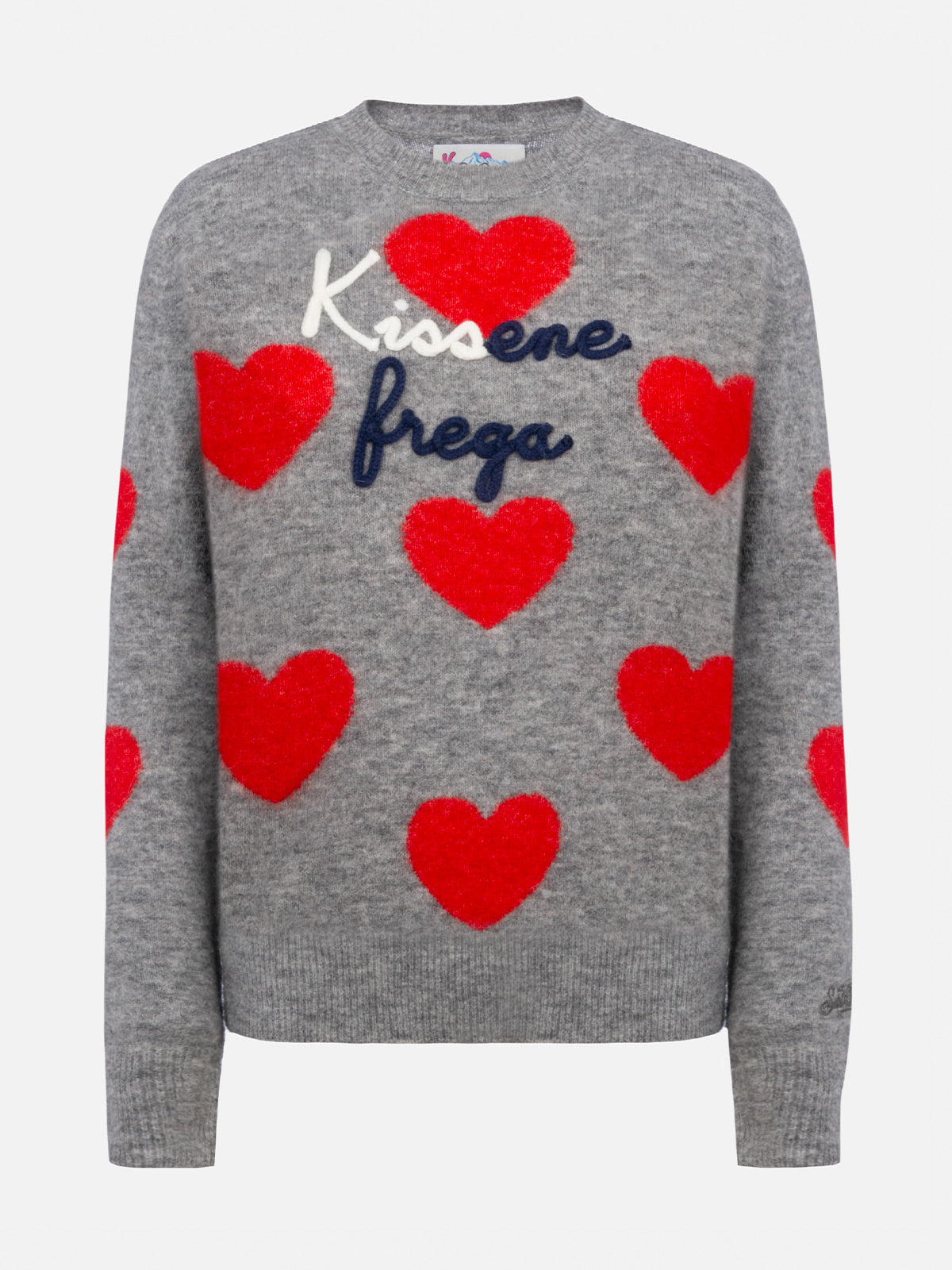 Woman grey sweater New Queen Kissene frega embroidery