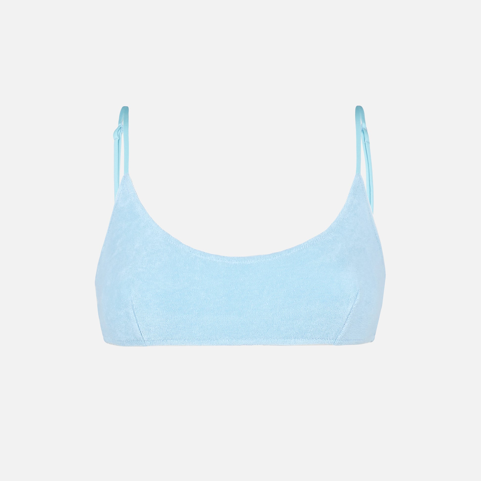 Woman light blue terry bralette swimsuit