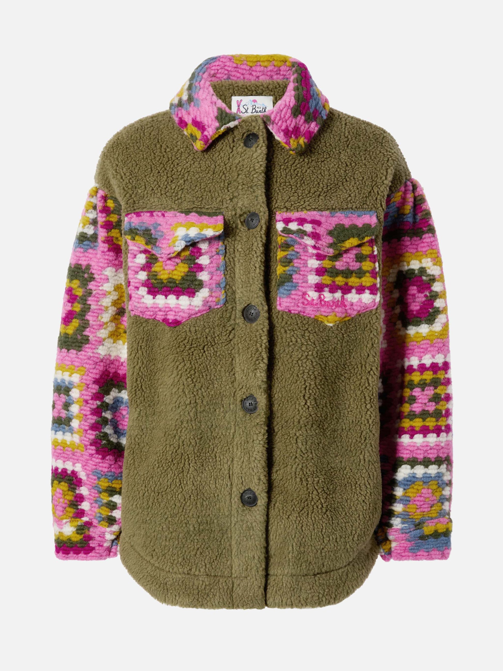 Woman sherpa overshirt with crochet details