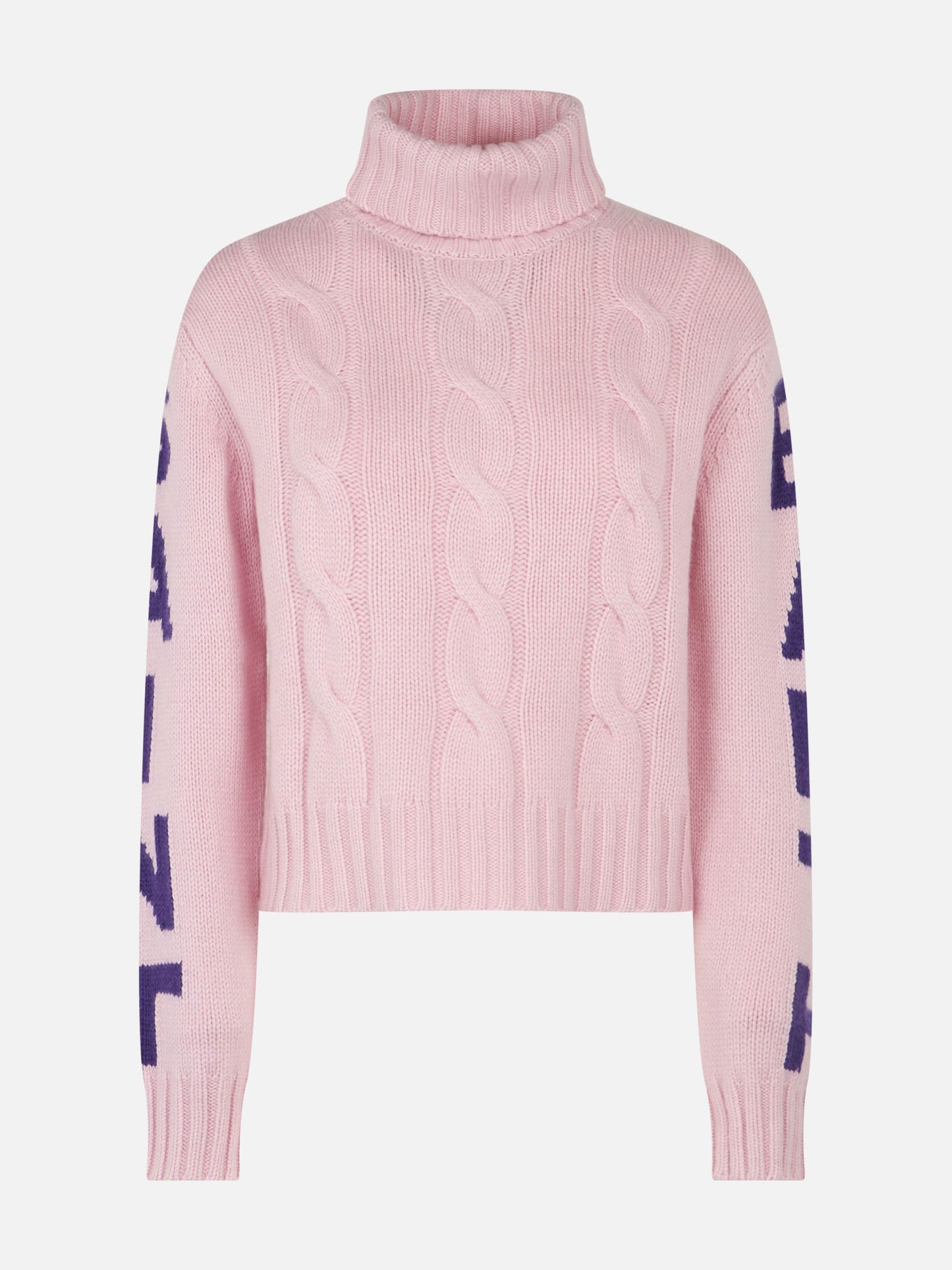 Woman turtleneck braided sweater with Saint Barth jacquard